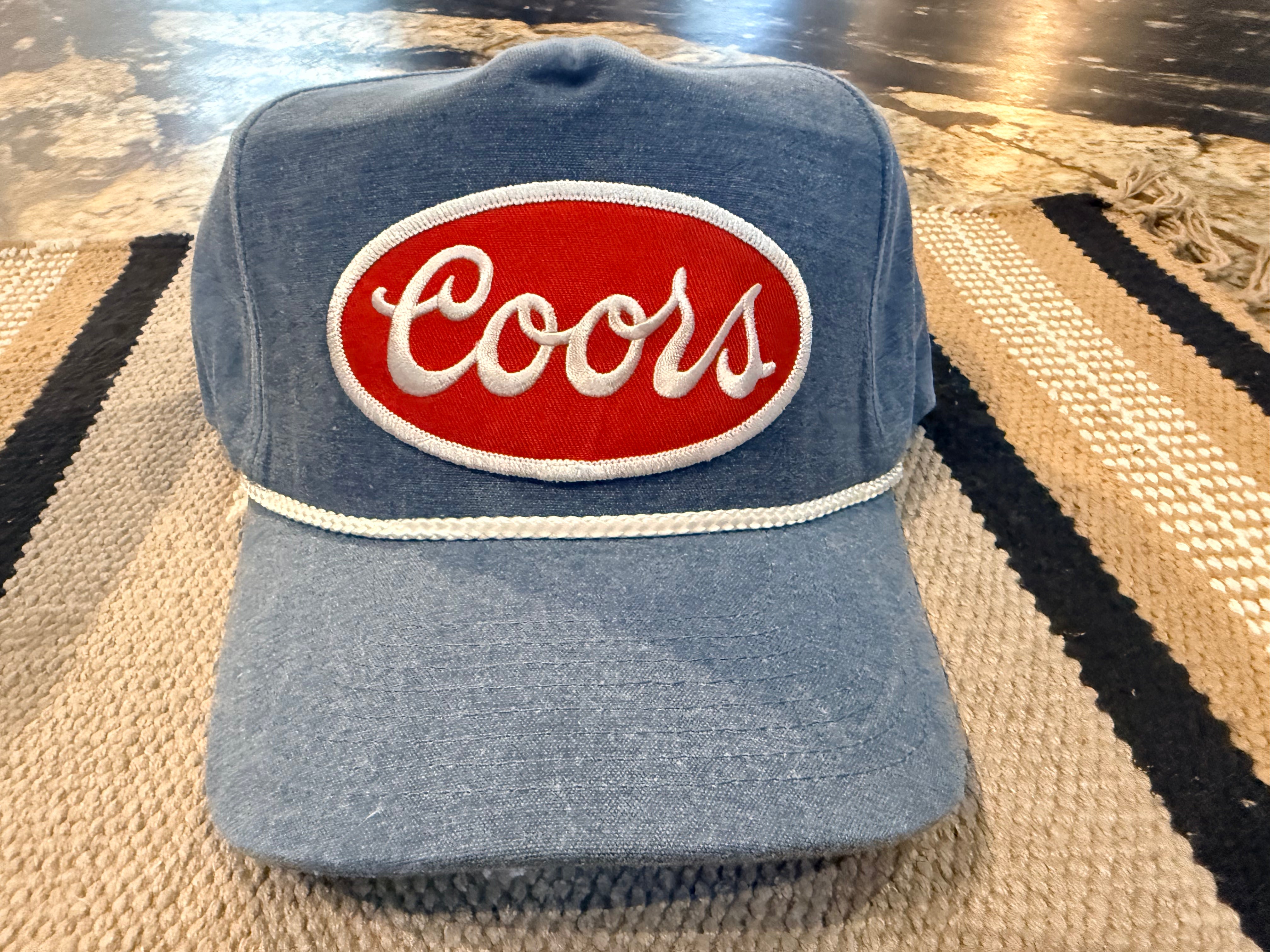 Our Whites sitched Coors stitched patch pops hard against a red background, set on our signature Cobra Sky crown and finished with a crisp white braid for that clean contrast.
