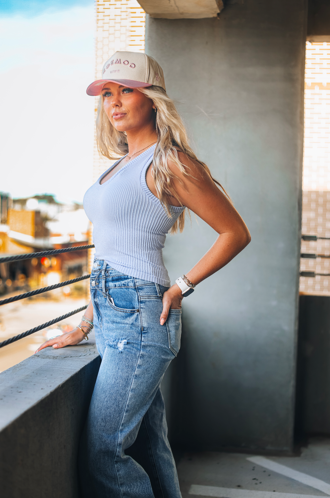 . Features: * Custom-Dyed Canvas: Each cap is carefully hand-dyed for a unique, vibrant finish that gives it a distinctive, worn-in vibe. * 3D Pink Embroidery: Bold, raised "COWBOY WIFE" lettering in soft pink embroidery adds a playful, eye-catching detail that stands out from the crowd.