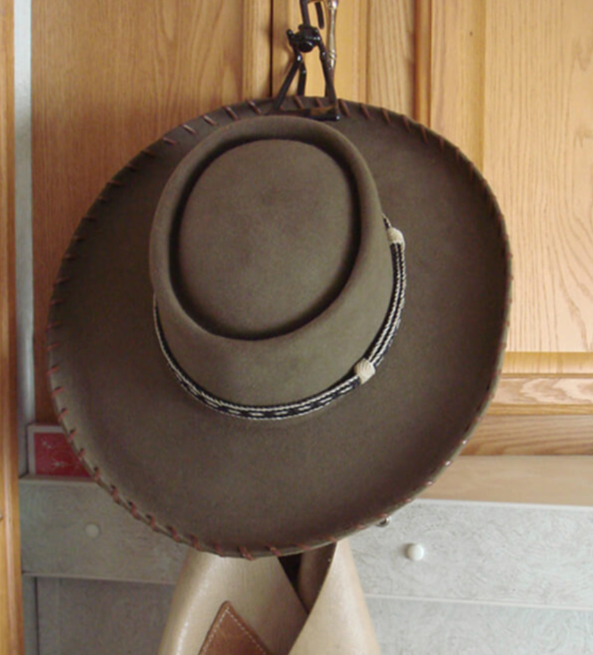 The ULTIMATE Hat Hanger simply cups the hat from the inside without hurting the brim. It will hold up to a six inch brim.