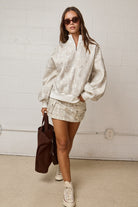 CAMO ZIP UP COLLARED SWEATER Stay cute and cozy in this oversized half-zip pullover!