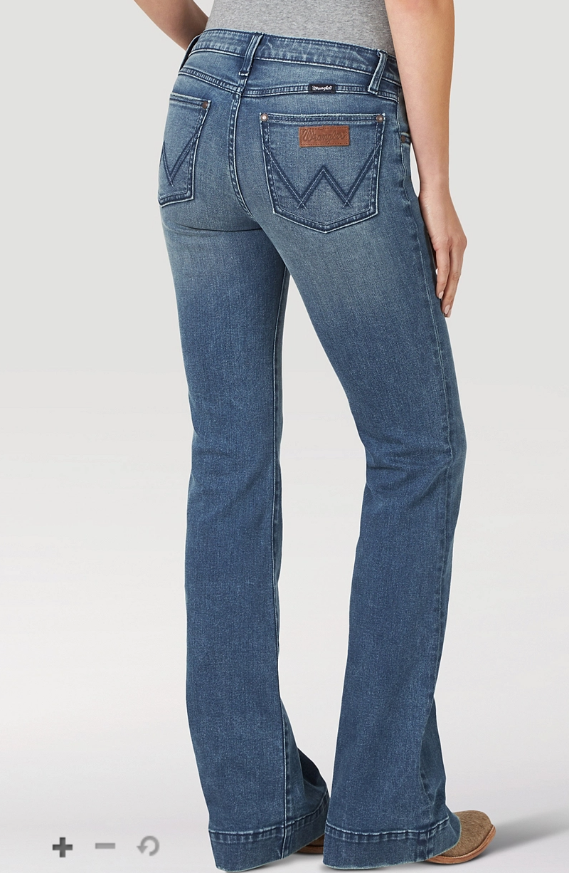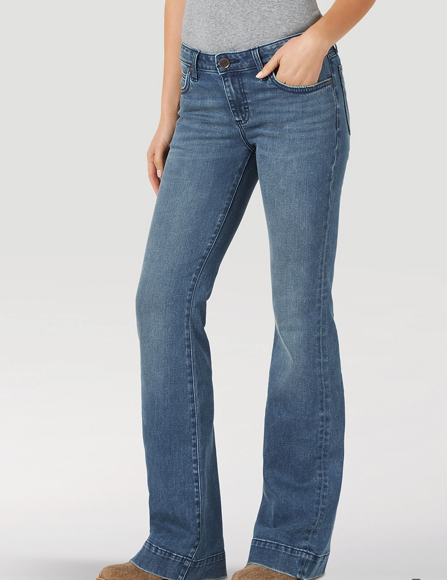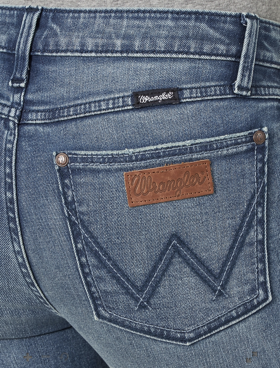 Like all Wrangler Retro® jeans, our Mae wide leg is marked by its Western authenticity, making it a go-to style for cowgirls everywhere. With its contour waist and mid rise, these women's trouser jeans are made to fit comfortably while they flatter. Want the look of a flare with added comfort? Our women's wide leg jeans make it happen. With more room at the knee and a gradual opening down the leg, the Mae wide leg gives you the room you need to stay active and in style. Wrangler® jeans for women are designed with a Western state of mind, so you can be confident that they'll keep up with you no matter what the day brings.
