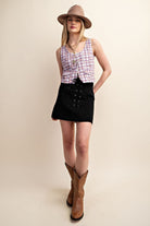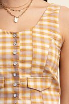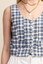 This Checkered Pearl Snap Vest is the perfect addition to any outfit. Made with high-quality material and convenient snap buttons, this vest is both stylish and practical. The checkered pattern adds a touch of personality to your look. Upgrade your wardrobe with this versatile piece. We have this vest in four fun colors and a matching maxi skirt!