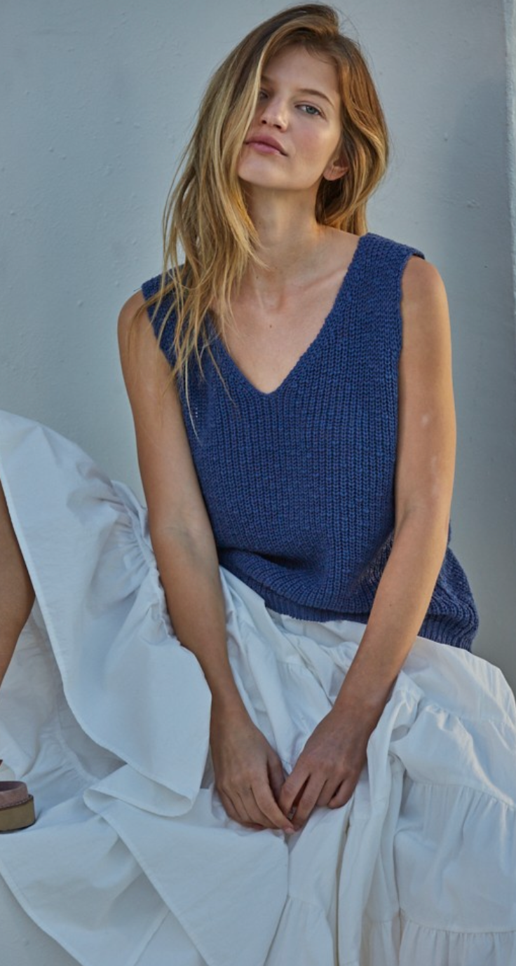 Knit Sweater Cotton Acrylic V-Neck Sleeveless Vest Top
