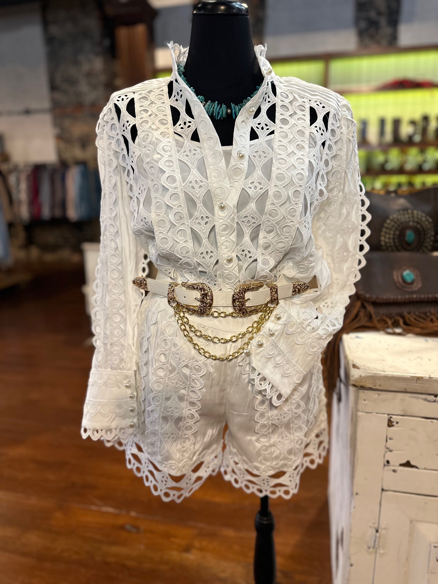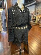 Take your style to the next level with this daring LOVIN LACE set! Featuring a long sleeve top and shorts, three piece set in your choice of two colors, this is the perfect outfit for those who aren't afraid to take risks. Step out in confidence and make a statement in this must-have set!