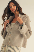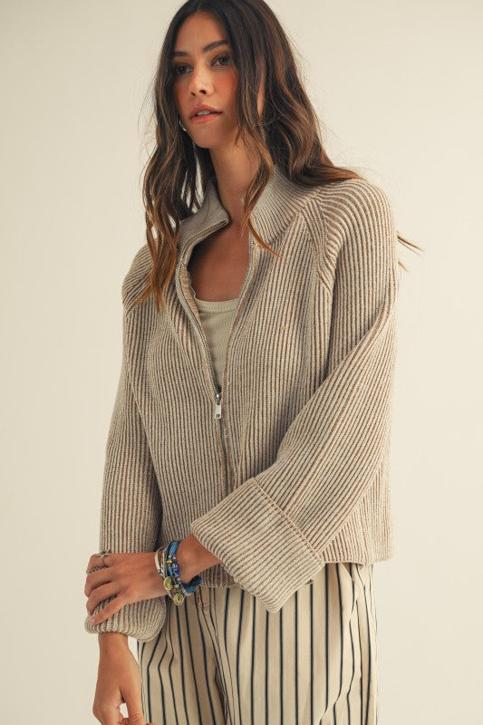 Pefrified Wood Relaxed Zipper Knit Cadigan