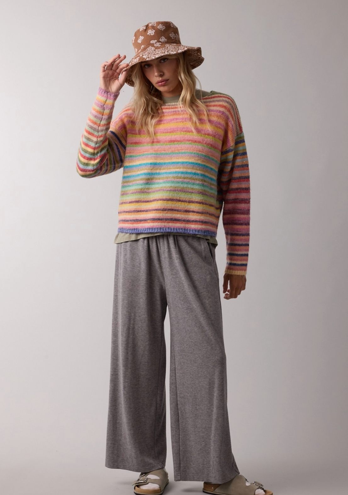 Crafted from multi-color yarn, each piece is wonderfully unique, ensuring the color variation makes yours one-of-a-kind. Embrace the joy of individuality with this cozy and cheerful knit. - MULTI-COLOR YARN, COLOR CAN VARY FROM PIECE TO PIECE *PRE-ORDER 04/30 - ALL COLORS