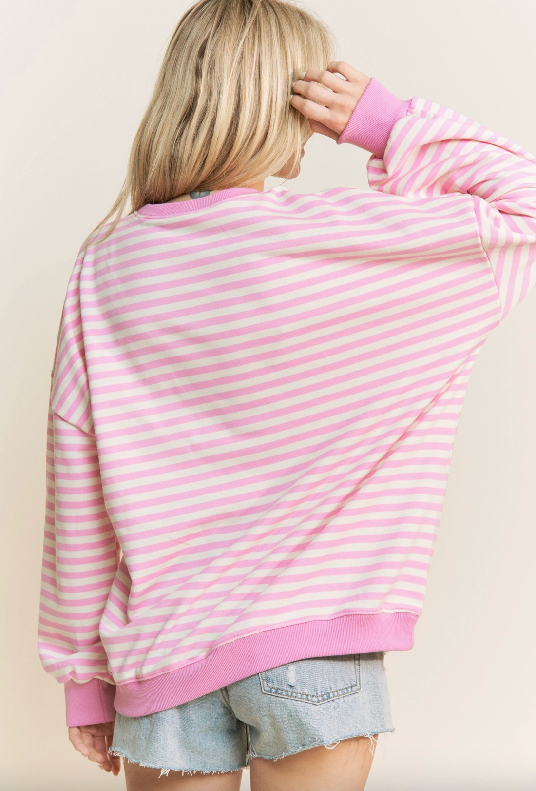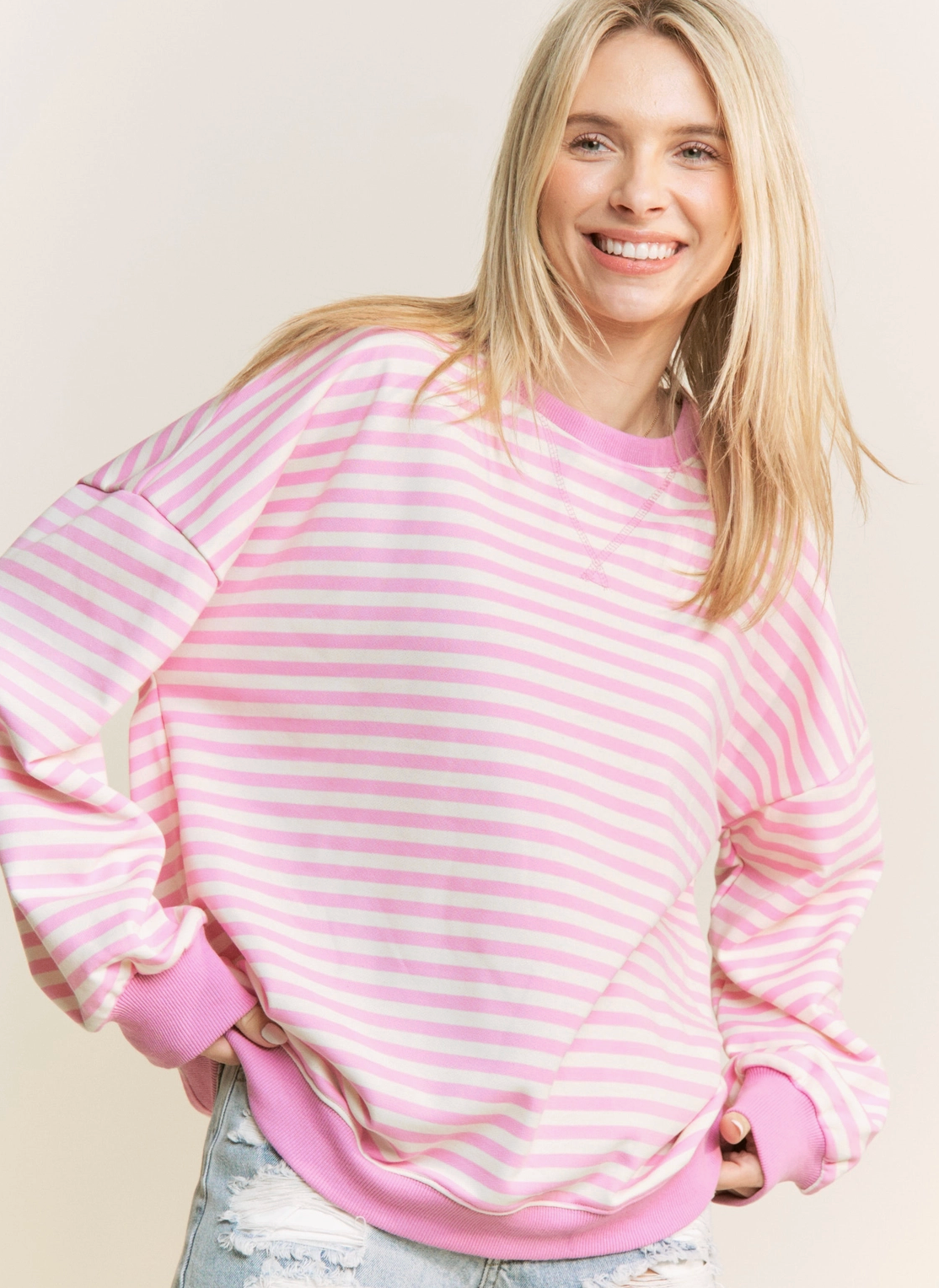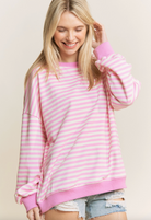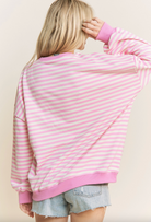 - Classic stripe print loose fit pullover top - Contrast rib bands on sleeves, bottom and neckline - Loose fit