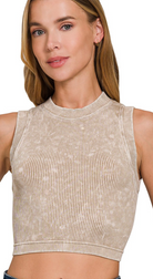 Stone Washed Ribbed Seamless Crop Top in Mocha