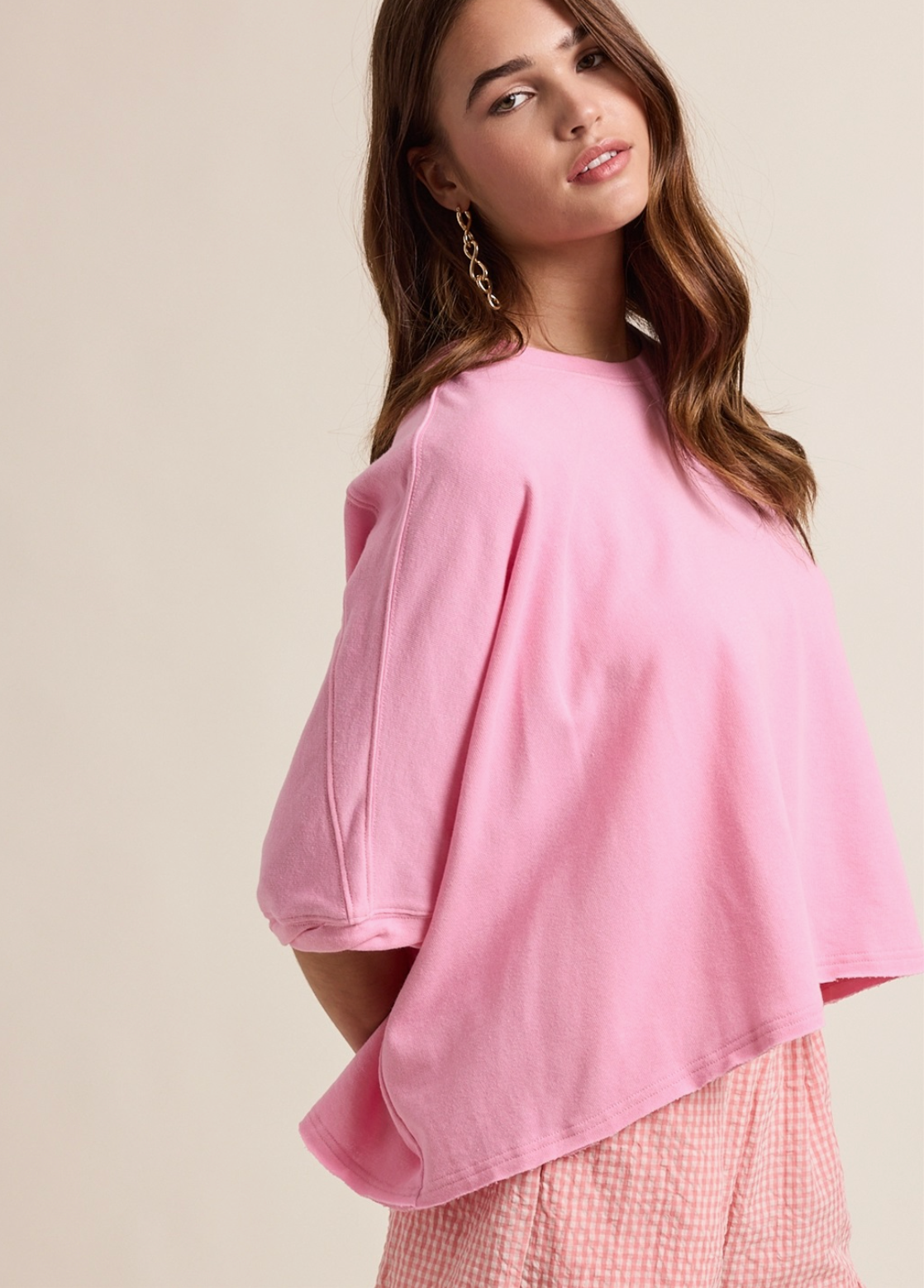 OVERSIZED RELAXED CROP KNIT TOP - OVERSIZED, GREAT TO WEAR AS IS, GREAT FOR SPRING/SUMMER DAYS, BREATHABLE 80% COTTON, 20% POLYESTER