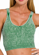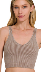 WASHED RIBBED CROPPED SEAMLESS BRA PADDED TANK TOP - REMOVABLE BRA PAD