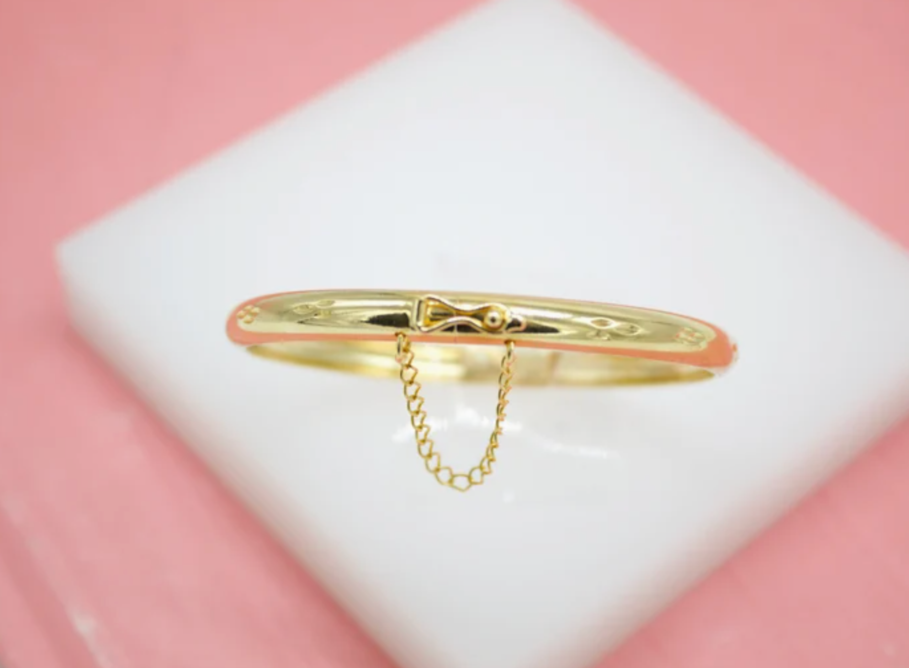 18K Gold Filled Wrist Cuff Bangle with Flower Engravings
