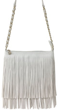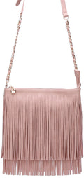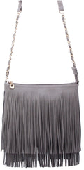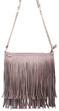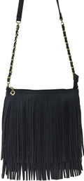 Fringe cross body with gold link and vegan leather strap,  perfect for a quick grab and go bag !