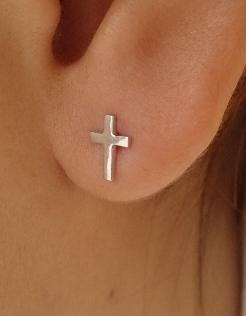 A pair of teeny tiny cross earring that can be worn alone or as a second hole earring.Essentials that you'll be reaching for again and again.