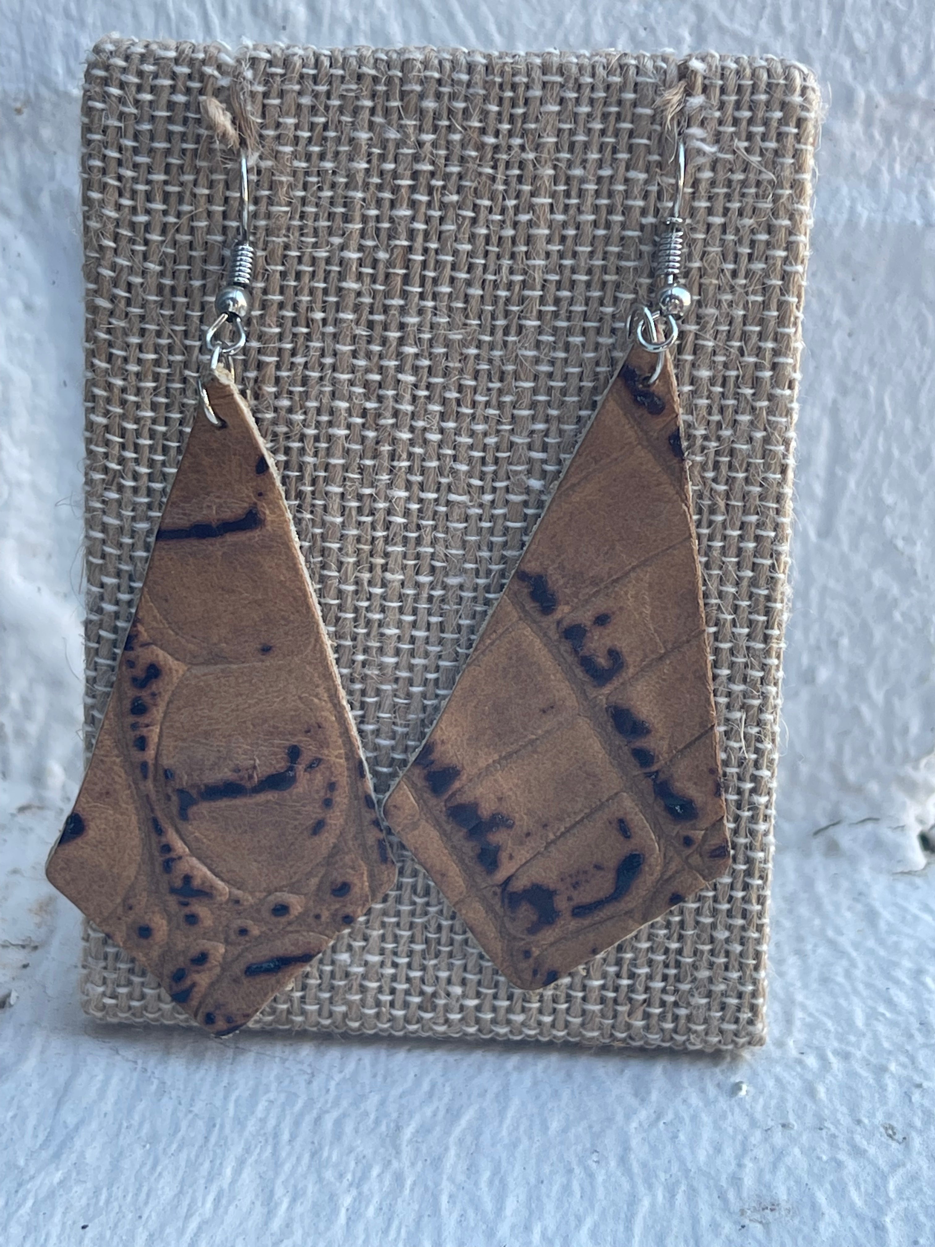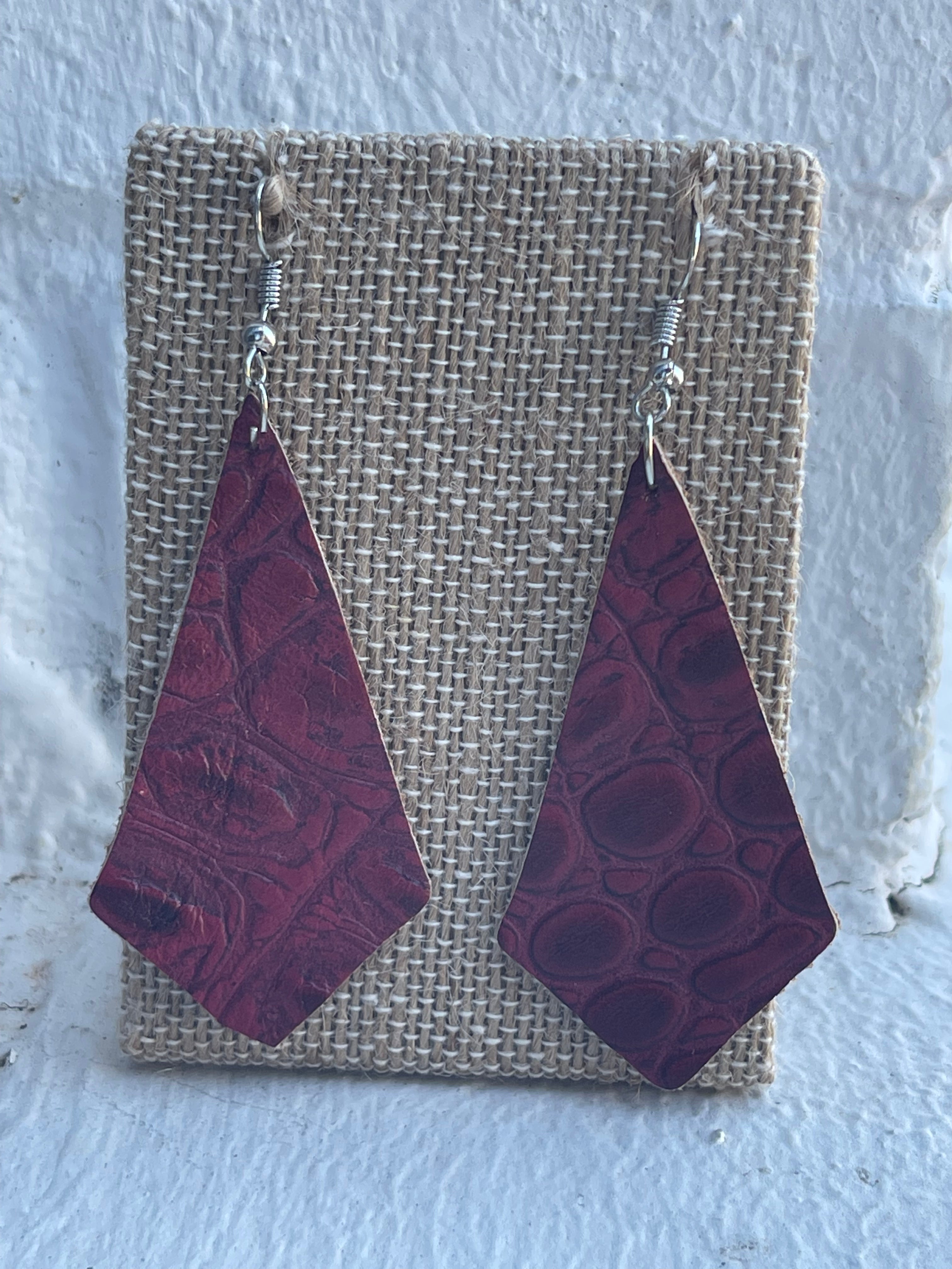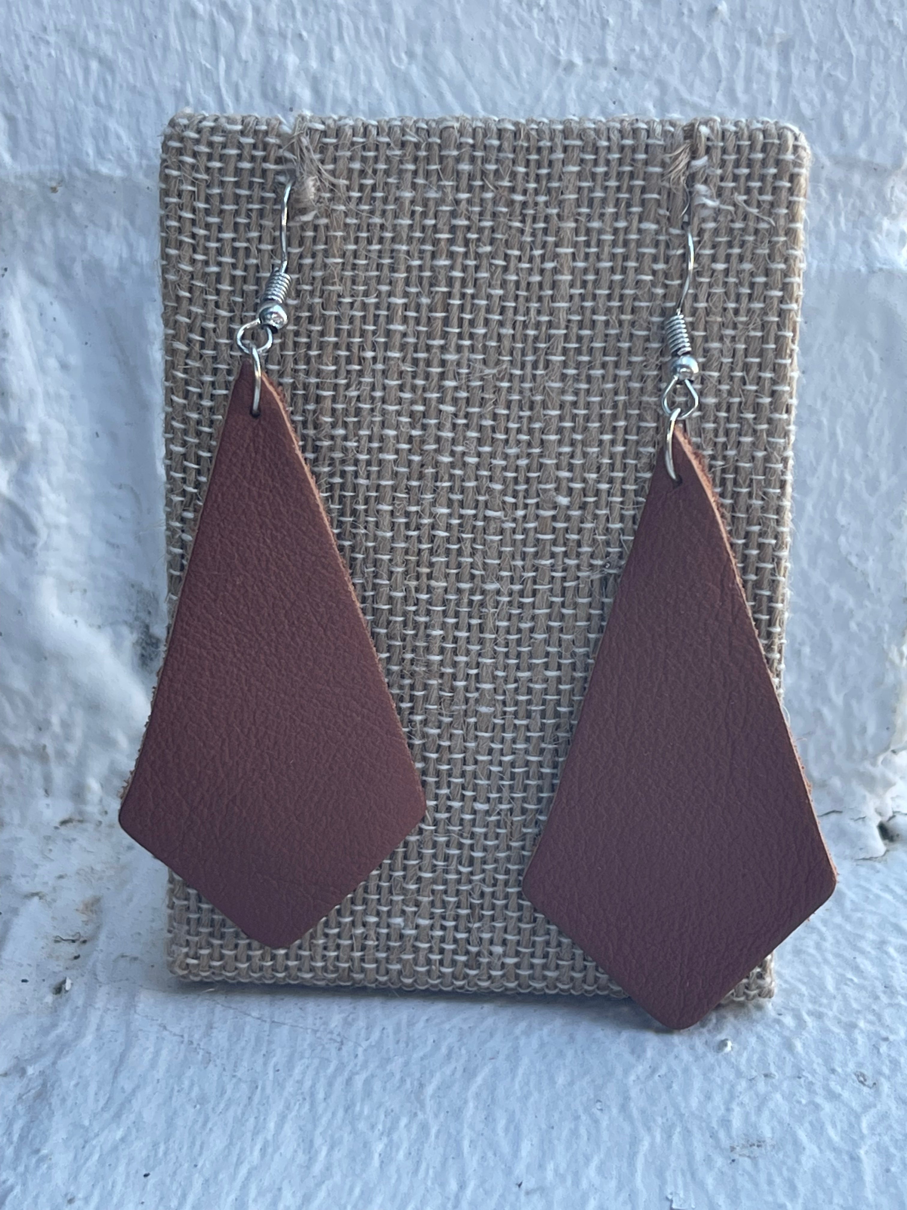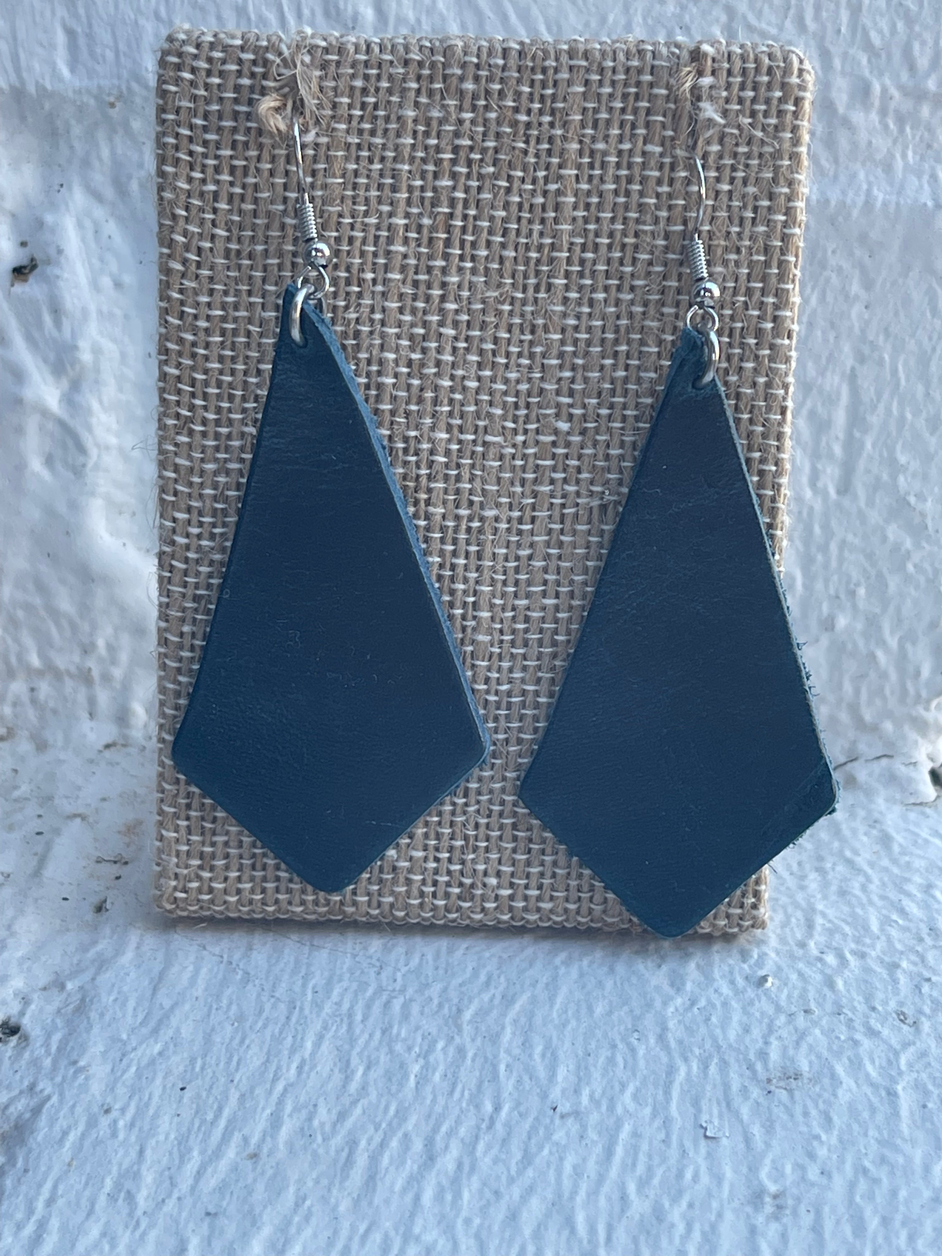 Handcrafted one of a kind leather triangle earrings. There are no two exactly alike!