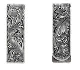 0.7” folded style sterling silver money clip with scroll engraving. Made and engraved by hand in Texas by Clint Orms Engravers & Silversmiths.