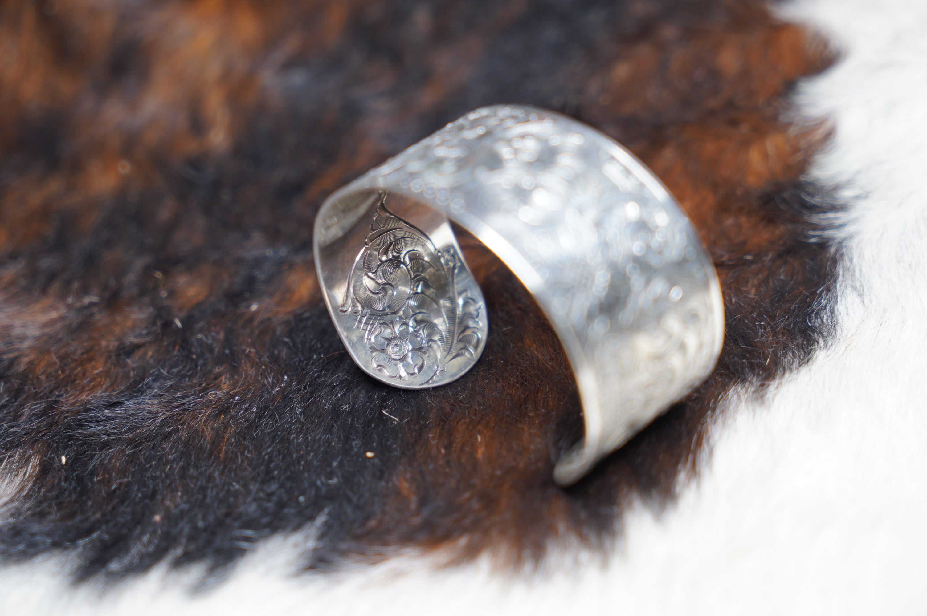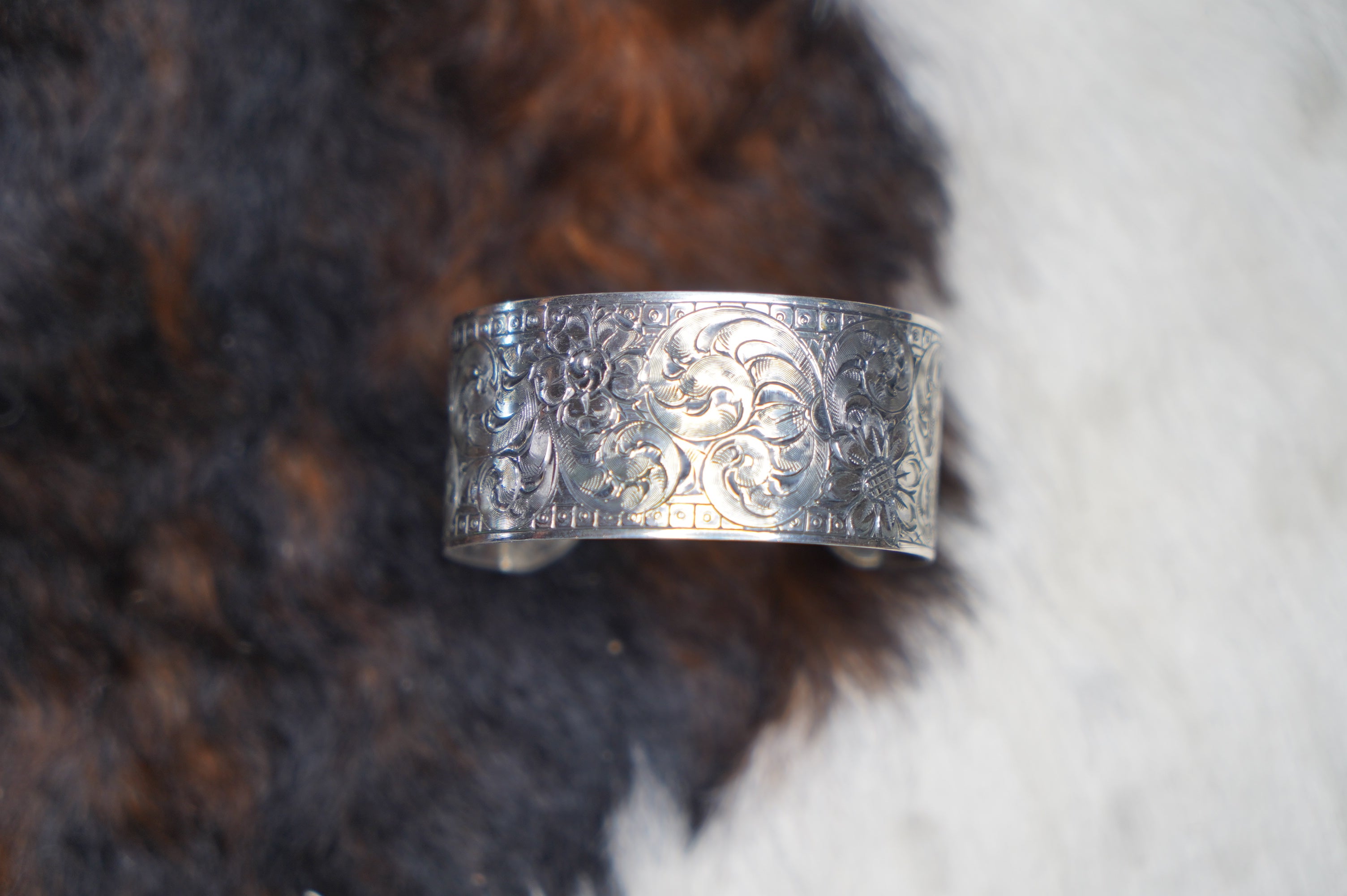 1.15" Sterling Silver Bracelet w/ Floral Engraving