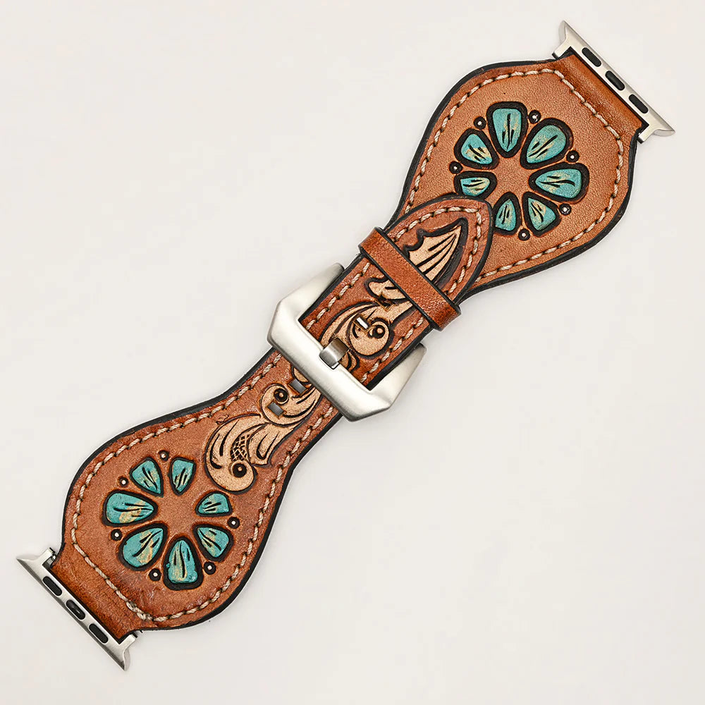 Hand tooled, carved and painted vegetable tanned American Cowhide Leather exquisitely done by the finest craftsmen in the country.