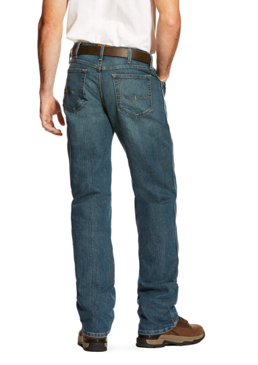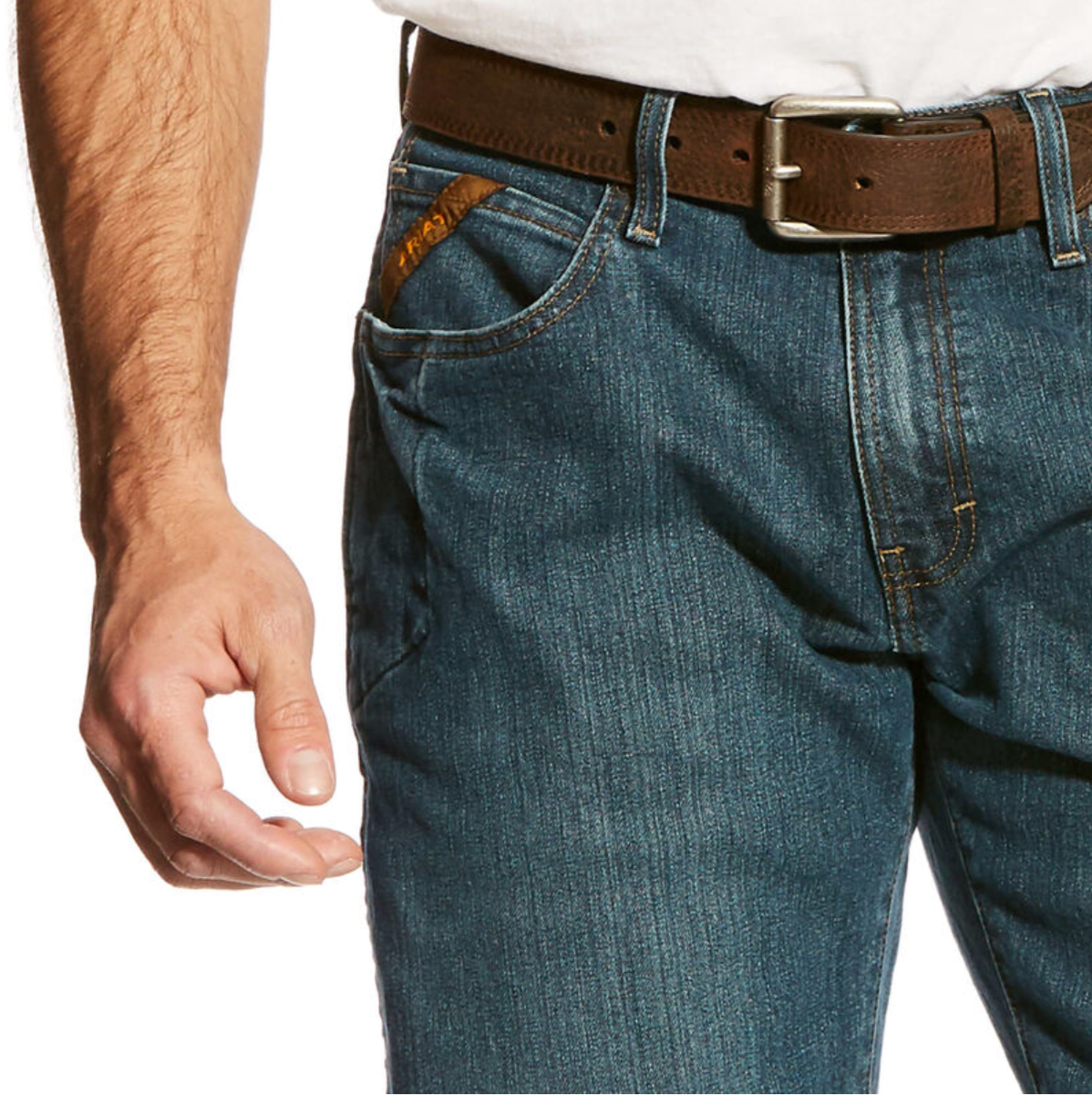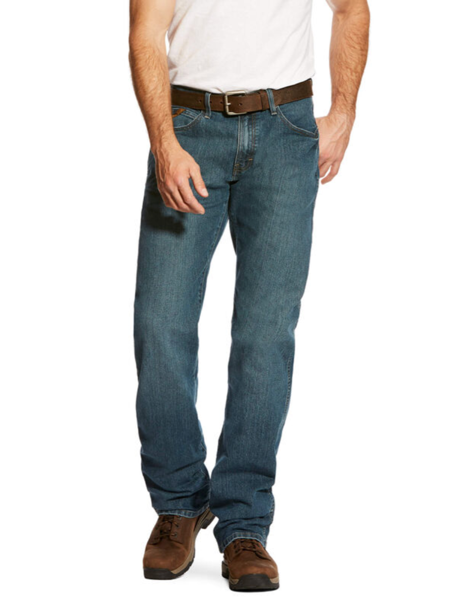 Make the Ariat Men's Rebar Fashion M4 Low Rise Boot Cut Jeans part of your wardrobe. Made with cotton, polyester and spandex, these jeans sit low on your waist and feature a sleek boot-cut style.