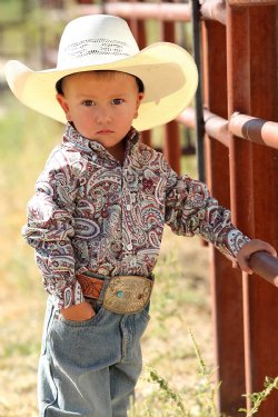 Outfit your sharp lil' dresser in a multicolored paisley printed button down just like dad's. This good-looking shirt features cotton plain weave construction, an open left front pocket, embroidered logo and white buttons.
