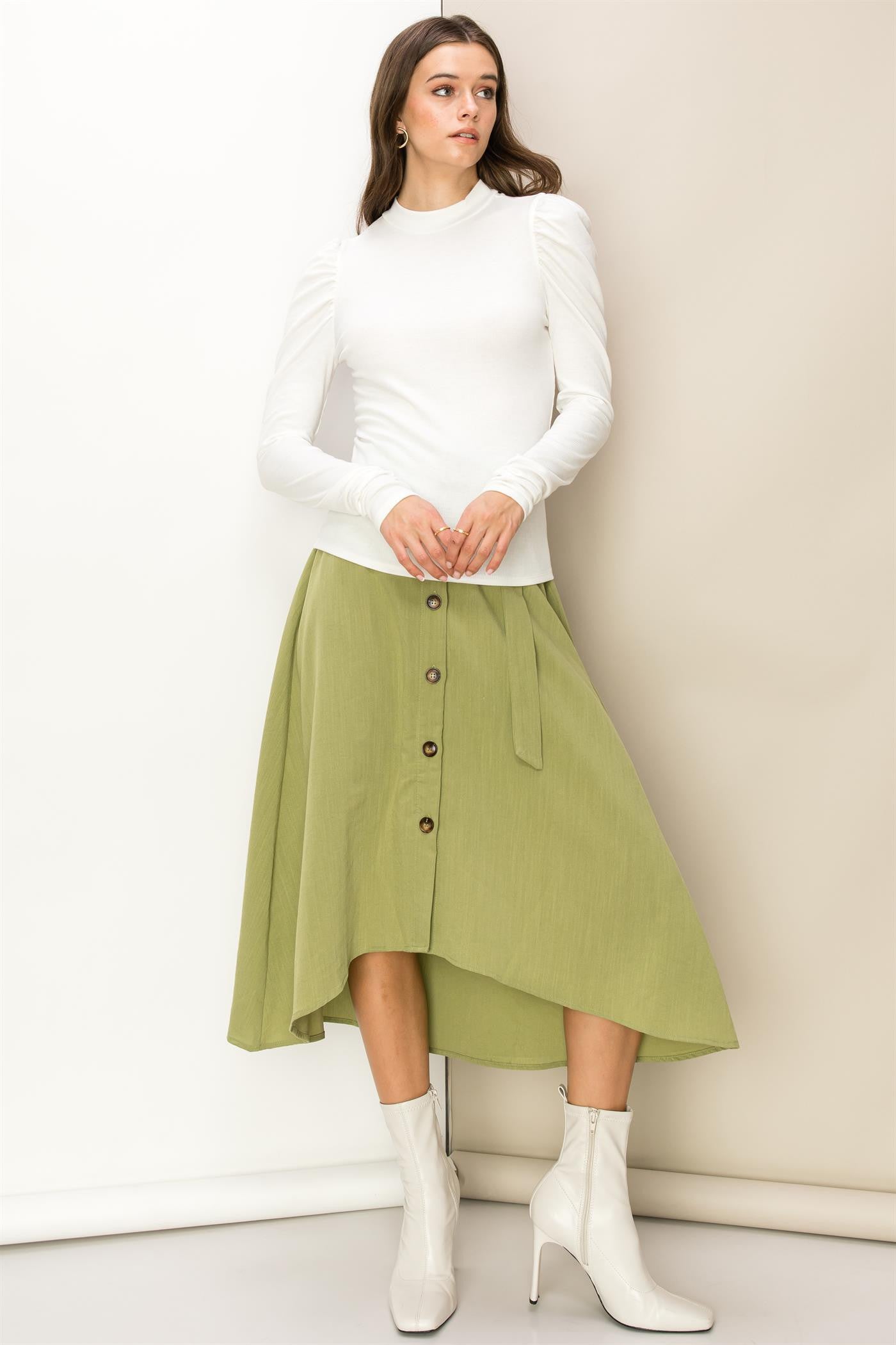 Look exceptionally cute in our Chloe ribbed knit, ruched shoulder, long sleeve top.