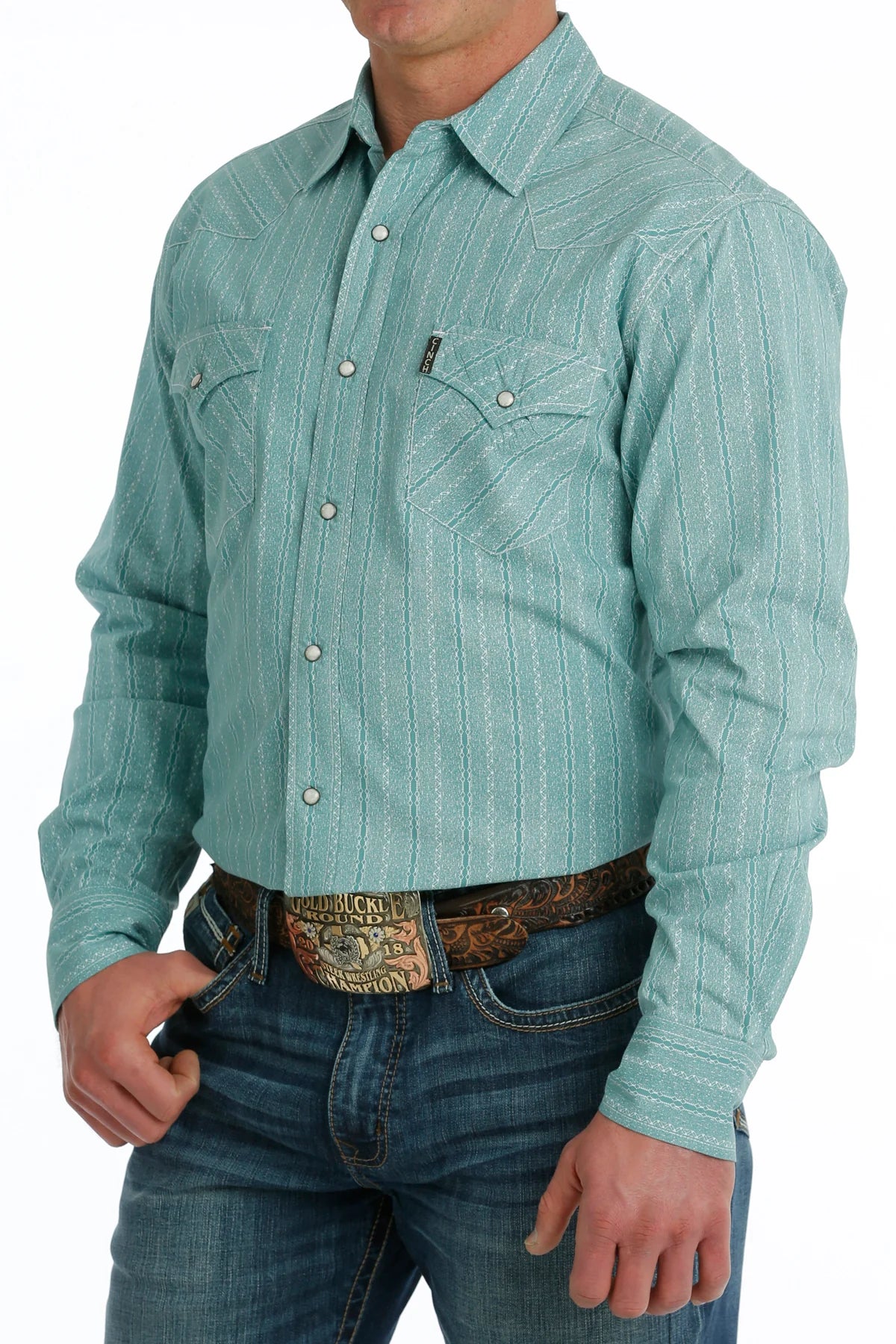 Cinch Mens Long Sleeve Snap Button-Down Shirt - Turquoise MTW1303074