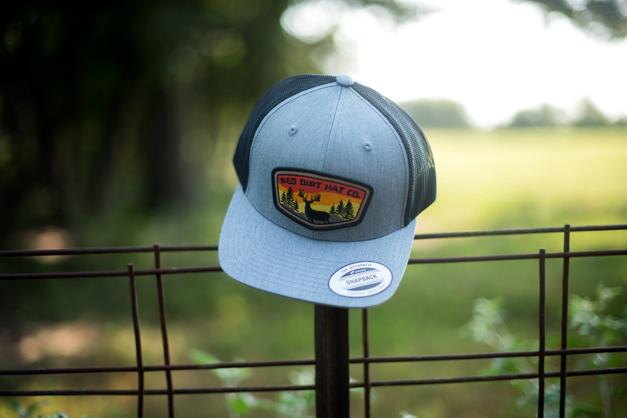 Expertly crafted by Red Dirt Hat Co., this grey and black snapback hat features a Deer Patch for a unique, stylish look. Made with high-quality materials, this hat is both durable and comfortable, making it the perfect accessory for any outdoor adventure. Stay cool and protected while showcasing your love for nature with the Deer Patch hat.