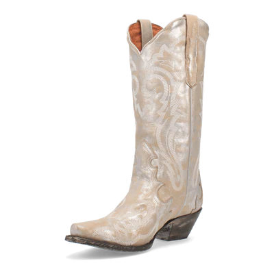 The glacial finish on the Frost Bite boot makes it crystal clear this is a beautiful boot. Handcrafted of soft vintage inspired leather with a fashion snip toe, medium cowboy heel and rustic leather outsole. The high and low tones add a richness to the leather. Walk with confidence in the Dan Post Silver Frost Bite Snip Toe boots. The striking silver finish adds a touch of western charm to your outfit. With a stylish snip toe design, these boots are both fashionable and comfortable. Perfect for any occasion, these boots will elevate your style game.