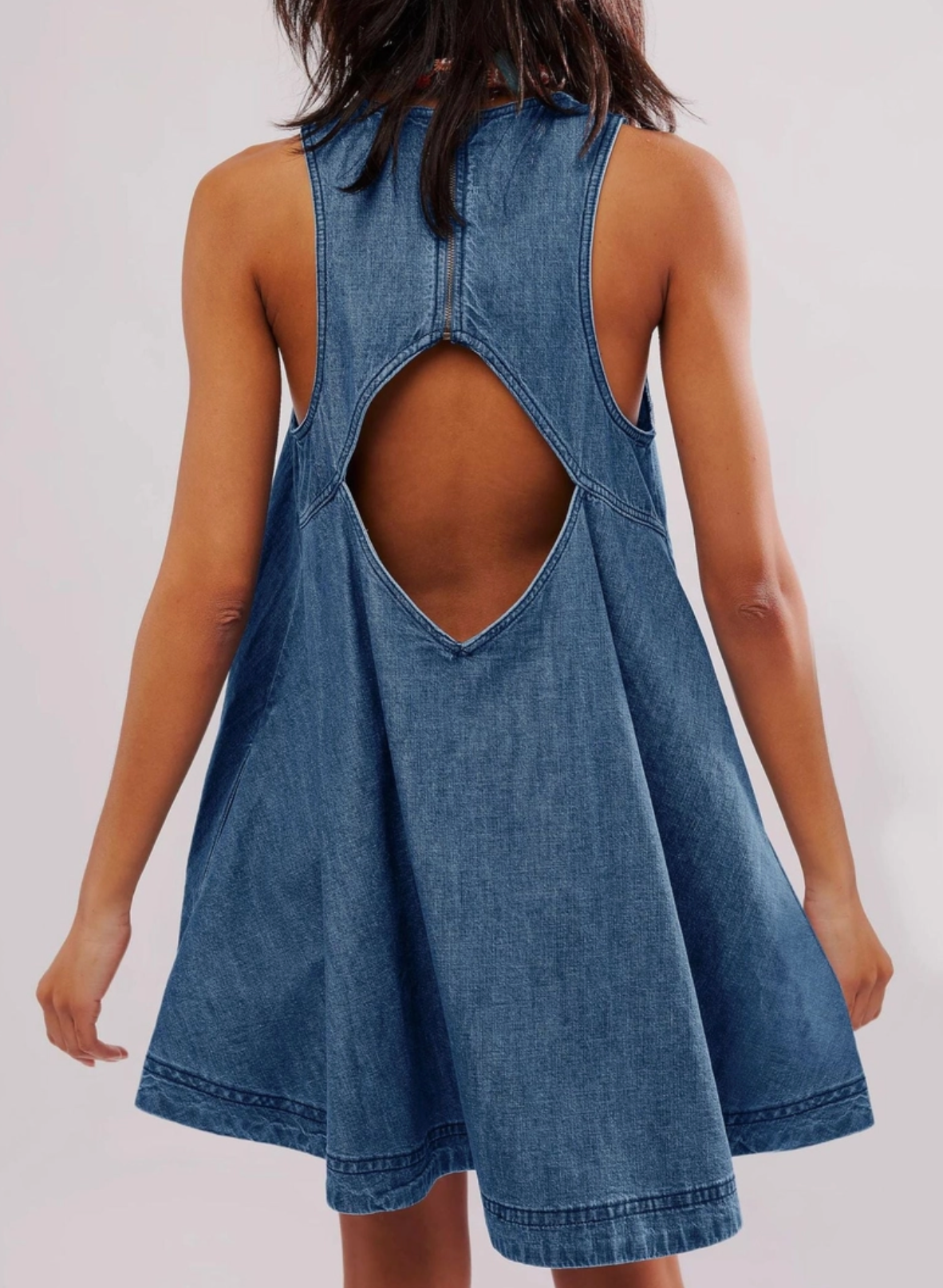 Denim Round Neck Sleeveless Mini Dress