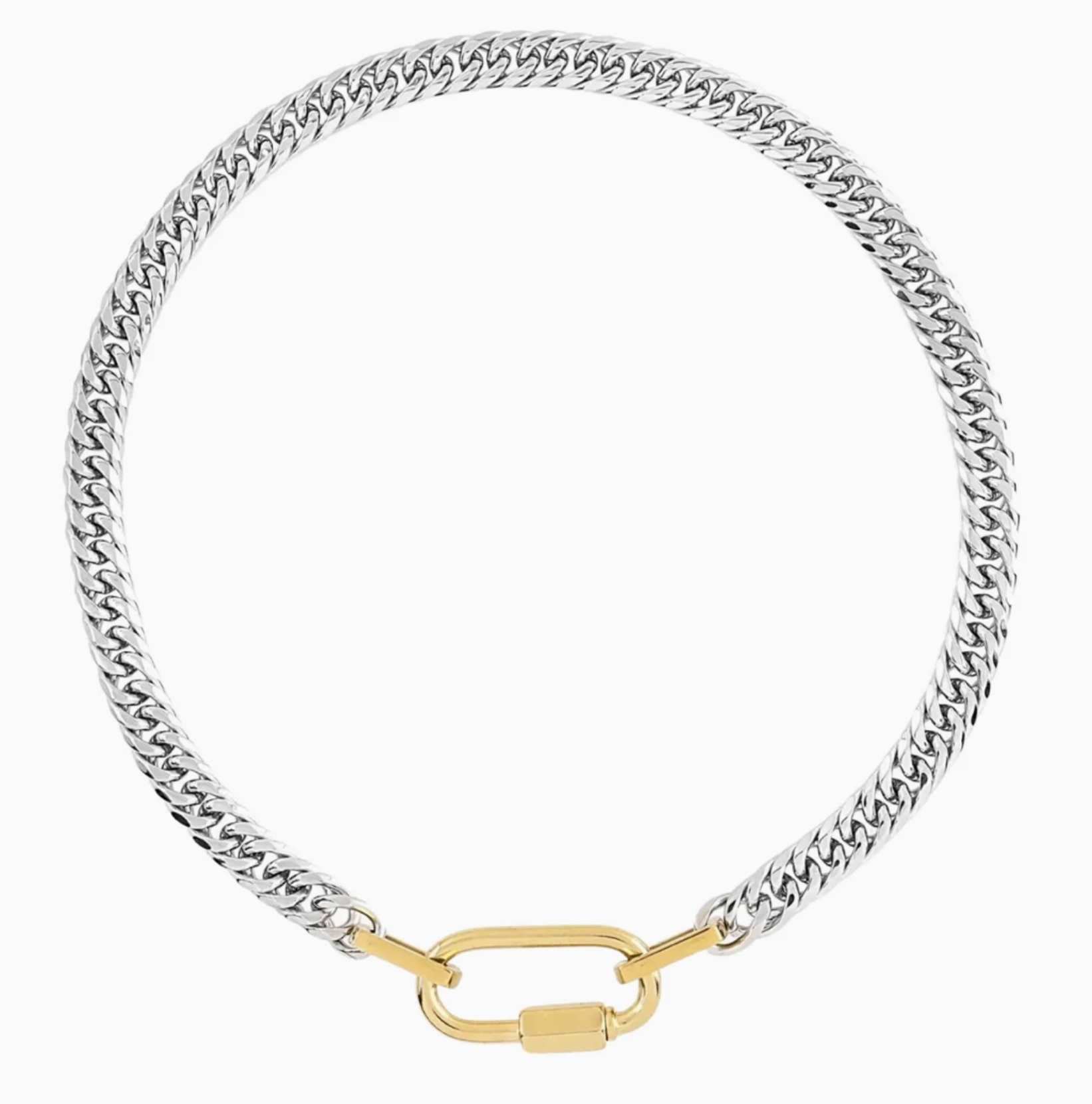 The Carabiner Link and Talisman Holder with mixed chain and charms. New and improved. The links are bigger and the necklace now does up at the Carabiner to ensure weight doesn't pull the closure apart. It is also more comfortable. Fully adjustable. Carabiner opens and can be added to. Pave is hand set CZ glass stones with foil for more sparkle. The Carabiner Screw Lock Necklace is a timeless jewelry staple as a clasp and a pendant. Evil Eye talisman charm. You can start your collection of charms mixed metal and extra chains. The Carabiner Collection allows you to stack your charms and chains. It is chic, Rock, Messy, Bohemian. Amulet link or Charm Collection Holder Created in a stainless steel model making it difficult to make but stunning and long lasting. Opens with a twisting bead to add charms or other chains. You can adjust these as clasps to make necklaces or bracelets or mix and match your stack 14K Genuine gold plated then EP coated. Waterproof Hypoallergenic