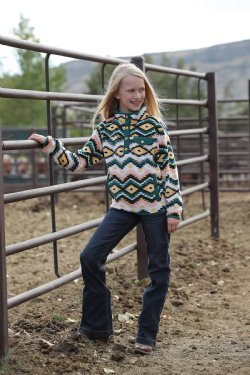 GIRL'S AZTEC PRINT POLAR FLEECE PULLOVER - FOREST GREEN