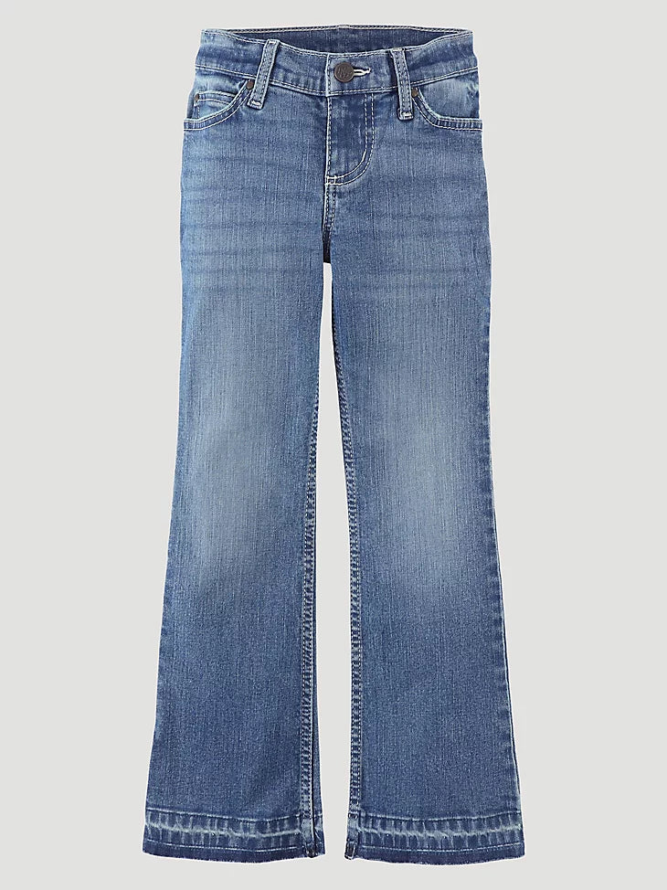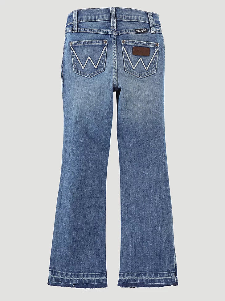 Help her steal the spotlight with the Girl's Wrangler® Raw Hem Bootcut Jean. Crafted from premium cotton with a hint of stretch, this jean features a released hem and iconic bootcut style that will match her energy any day. Our iconic "W" stitched pockets and brand detailing give it that authentic Wrangler tough.