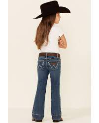 From our collection of styles for children, the Wrangler® girls' trouser features plenty of style in an everyday staple made to keep her comfortable all day long. Their adjust-to-fit waistband is designed to suit her needs by helping her get her perfect fit, even as she grows. Hip pocket embroidery, classic five-pocket styling, and a trouser leg opening that's slightly wider than a bootcut offer an authentic style she'll want to wear every day of the week. Whether she's getting ready for a full day of play or heading out to school, these girls' jeans are perfect for whatever adventure the day has in store.