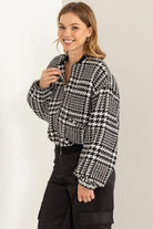 Kylan (Houndstooth Balloon Sleeve Bomber Jacket)