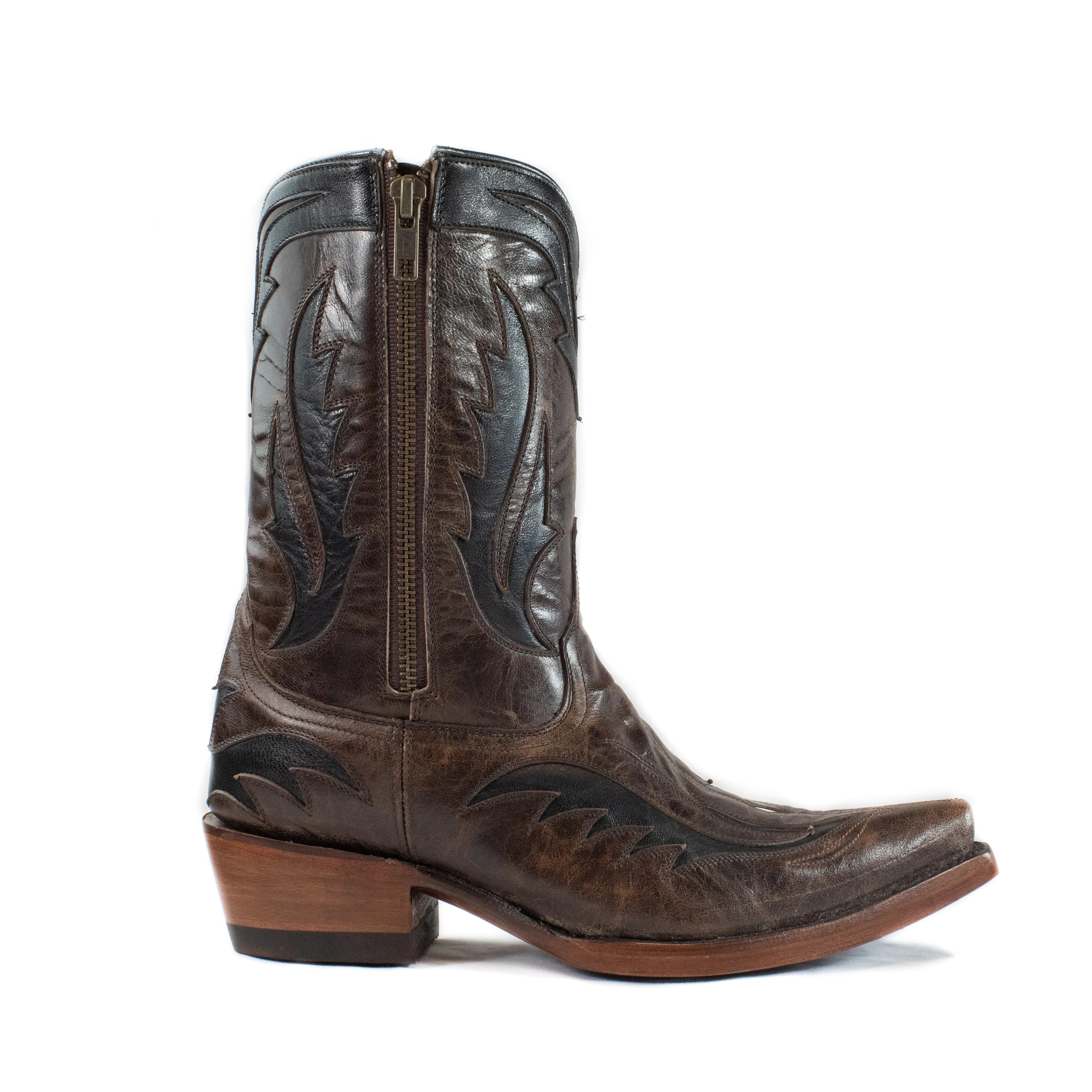 The Lina offers you the casual style and comfort of a bootie, in a slightly taller package. It has graceful inlaying, reminiscent of desert plants, and a matching border along its scalloped top-line. Its stacked leather western heel provides a stable platform for whatever you like to do. Full leather construction throughout. Made in Mexico.