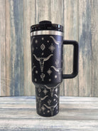 Unleash your inner cowboy with our Longhorn Stainless Steel Tumblers Cup! Hold your beverage of choice in style with this 40oz cup, perfect for any outdoor adventure. Choose from 4 bold colors to show off your wild side. Stays hot or cold for hours, making it the ideal tumbler for travel.
