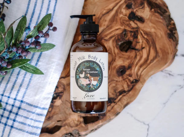 Forage Farmstead Goat Milk Lotion is exactly what you need. Its thick, and it absorbs quickly and completely. Our non-greasy formula will have your skin soothed and hydrated.