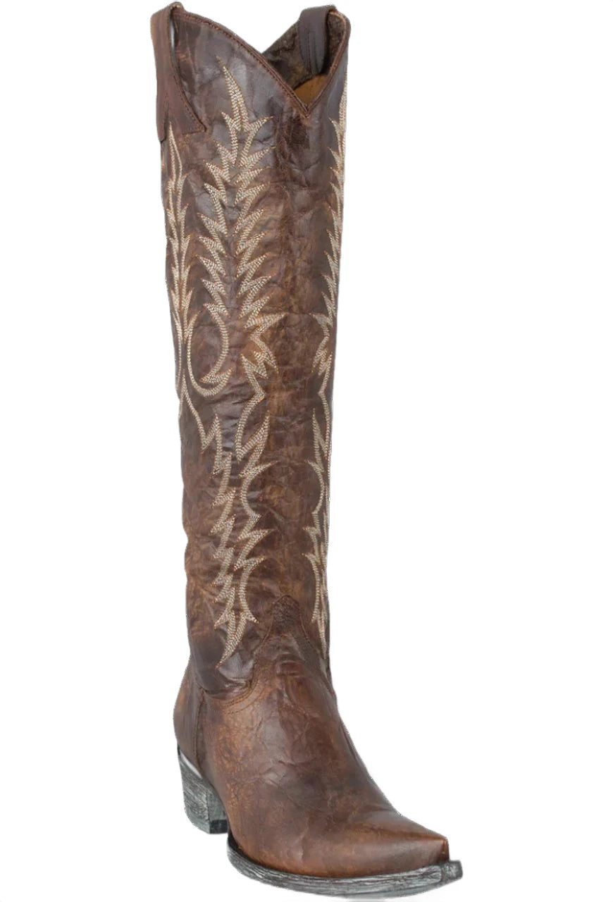 Timeless & Tall - The Mayra in Brass is a must-have pair. Western stitching on the shaft balanced with a pointed toe, for a more fashion forward look.