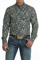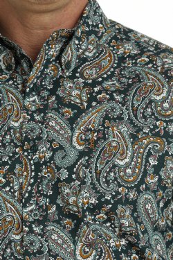 Cinch Mens Modern Fit Paisley Print Button-Down Western Shirt - Green