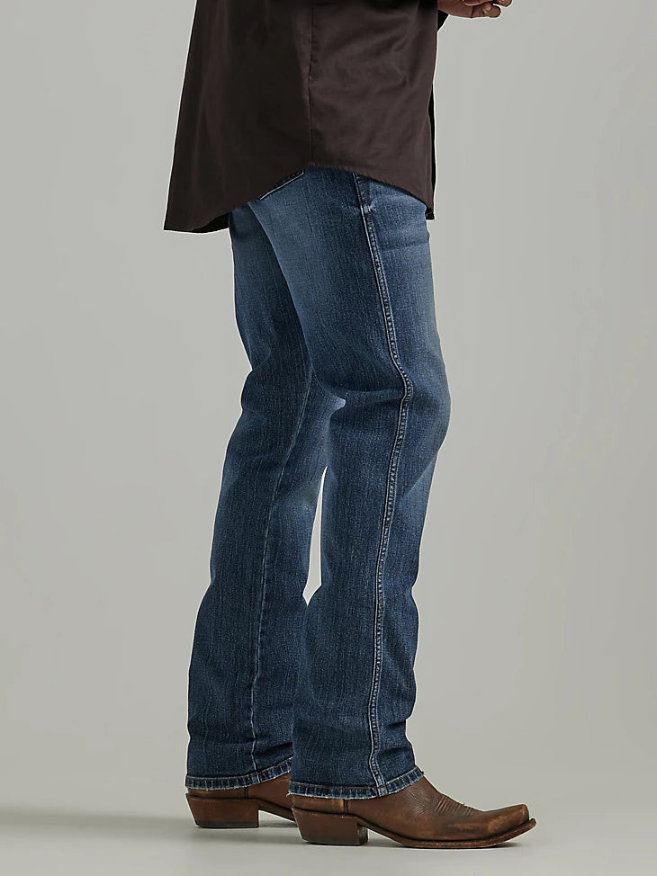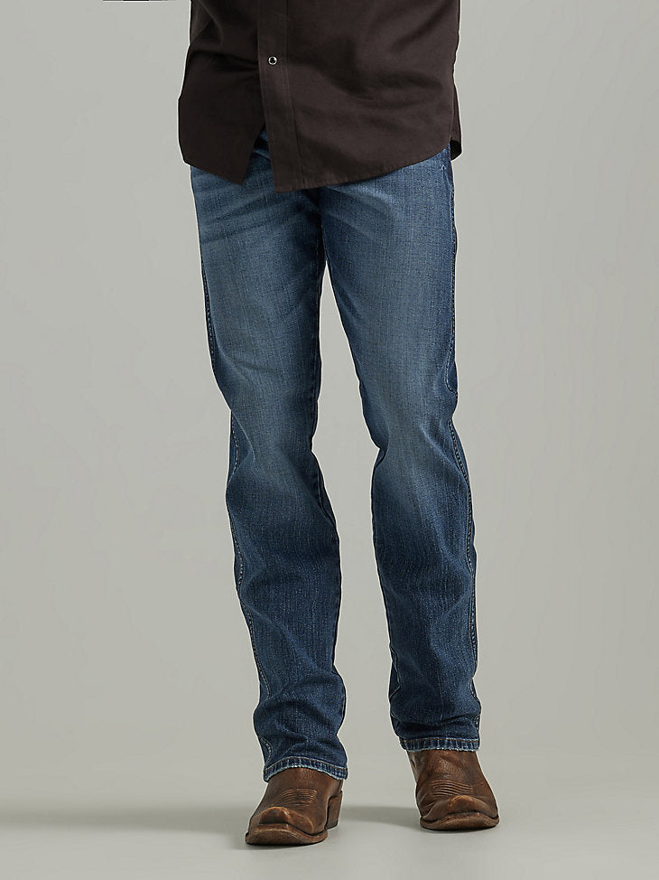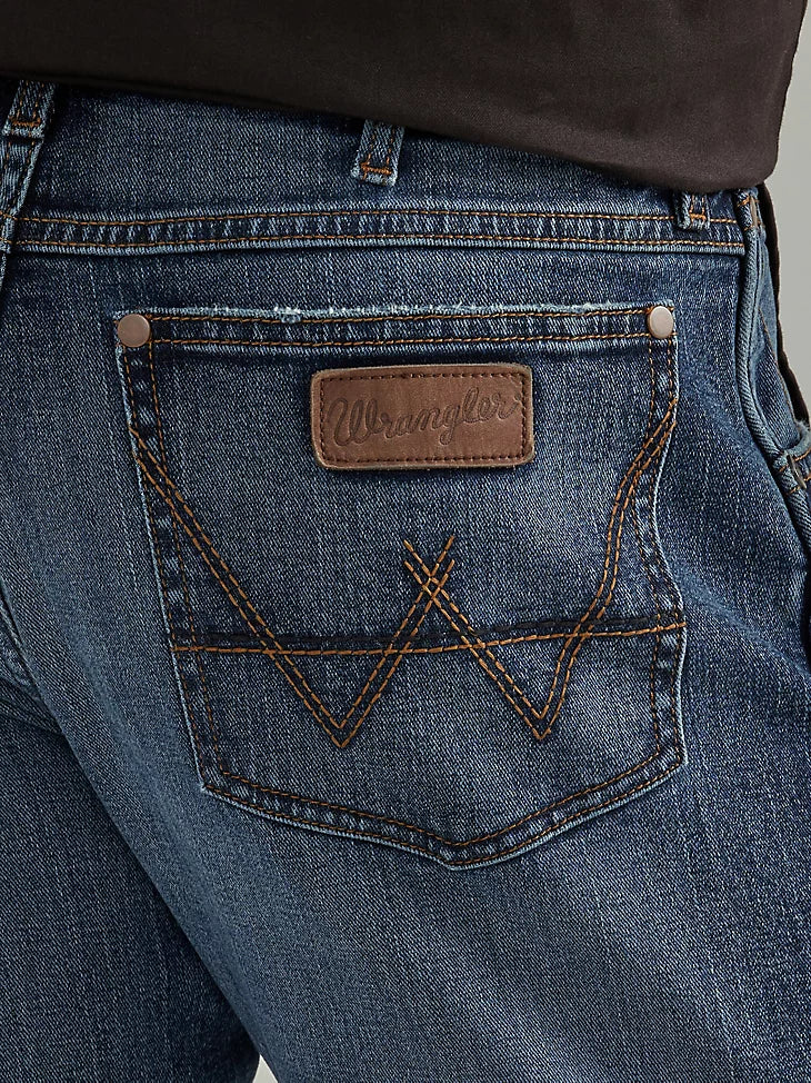 Wrangler® Retro® slim fit jeans nod to our history while introducing fits and washes suited for the modern cowboy. Designed with a closer fit and leg opening that still falls comfortably over boots, our men's Wrangler® straight leg slim fit jeans add extra style to the classic look you love. These jeans sit low on the waist and make it easy to show off your favorite belt buckle. That design detail is our Western heritage showing through, something that happens often with the Wrangler® Retro® collection. If you're going for a coordinated cowboy style with these men's slim fit straight leg jeans, pair them with a Western Wrangler® Retro® button-up to complete your look.