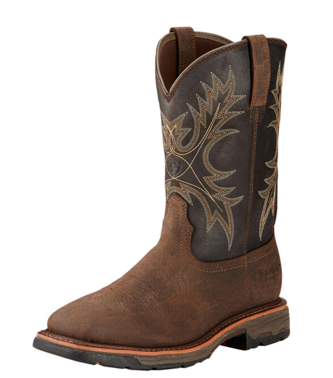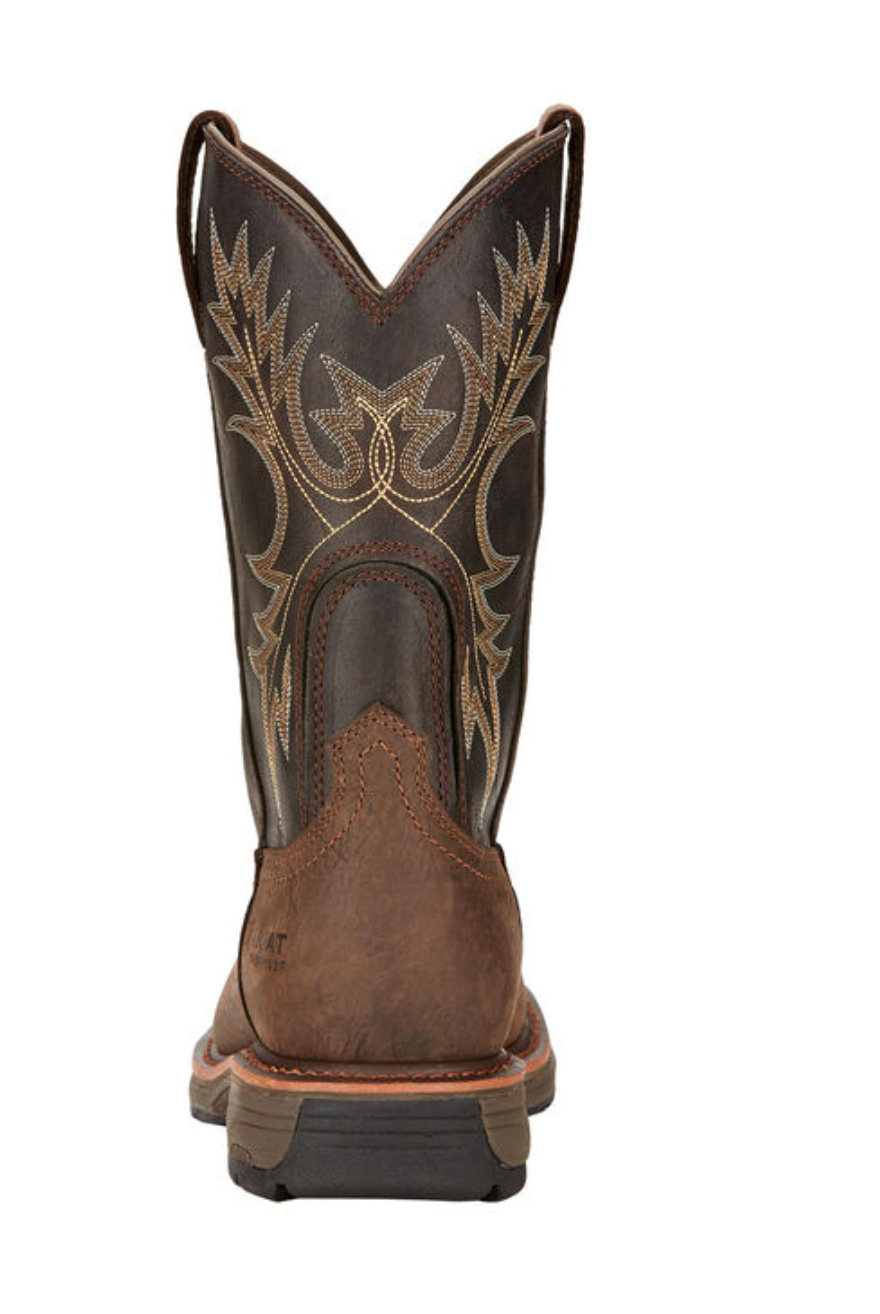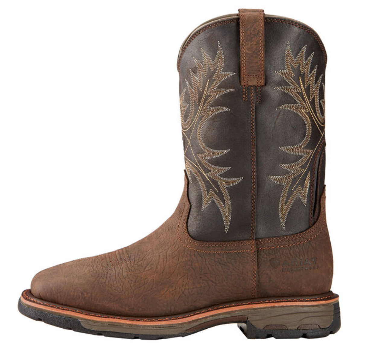 All the features and benefits of the Workhog wide square toe work boot, with Waterproof Pro construction. The Workhog Wide Square Toe H2O features a waterproof premium, full-grain leather upper and waterproof bootie construction built on a superior performing foundation of an ATS Max® for comfort and stability, Goodyear® welt construction, DuratreadTM outsole for maximum wear resistance with flexibility that is self-cleaning and non-tracking. The WorkHog™ Stability Platform features an extra wide stability shank system paired with a light-weight, cushioning EVA midsole to provide great all-around comfort and reduce foot fatigue. This boot is the best option for climbing/ladder work. This boot also features Ariat’s revolutionary U-Turn Entry System®, allowing for easy entry with a true fit regardless of foot shape. All this balanced on a 90-degree heel to keep the workforce standing square. Available in both soft and steel safety toe options. Soft toe is ASTM F2892-11 EH rated.