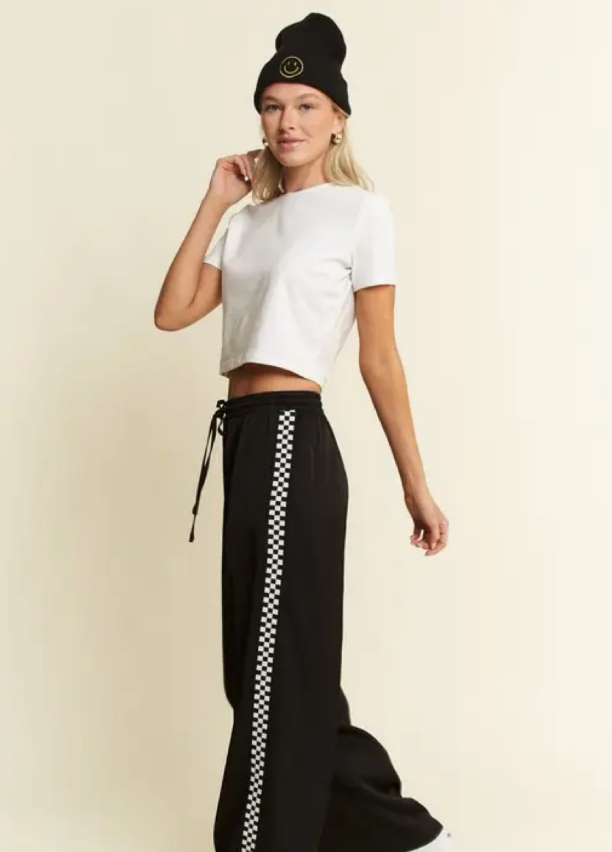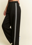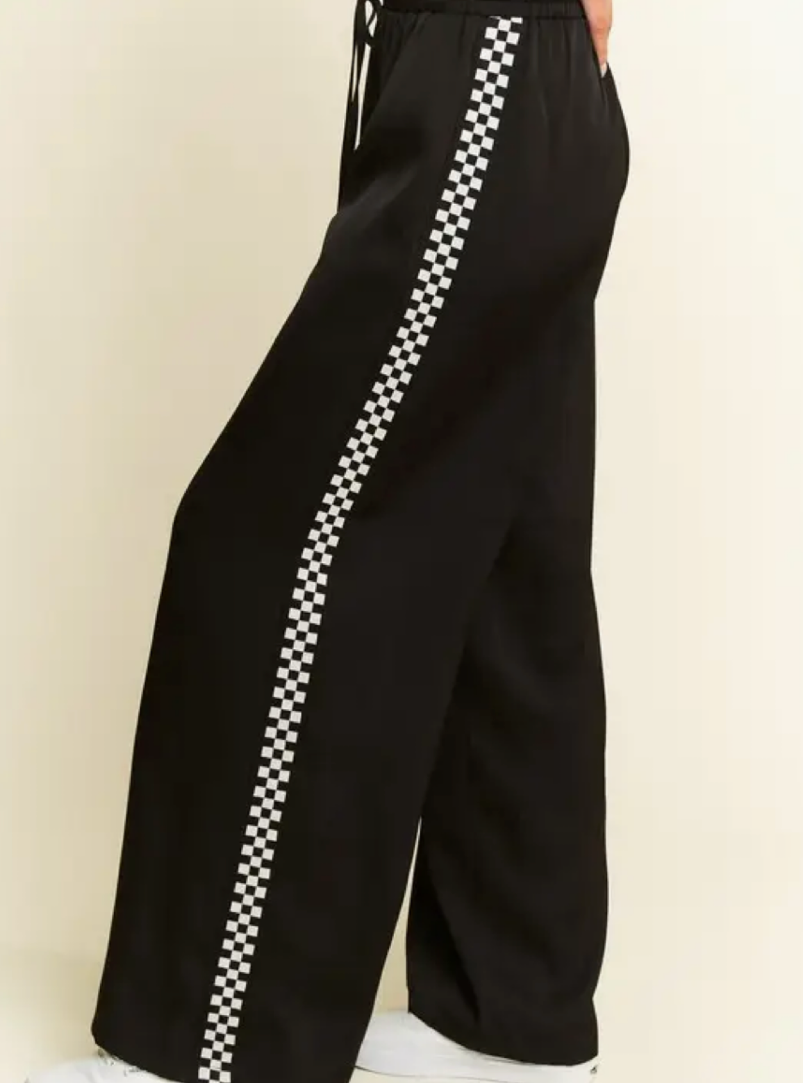 Solid Satin Sweatpants with Side Checkerboard Tape