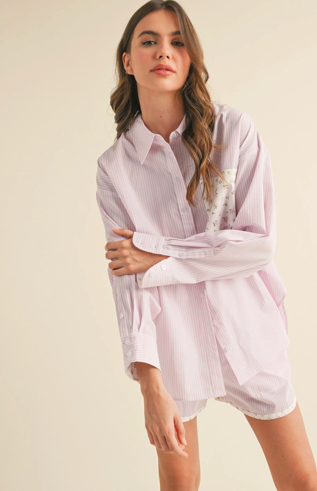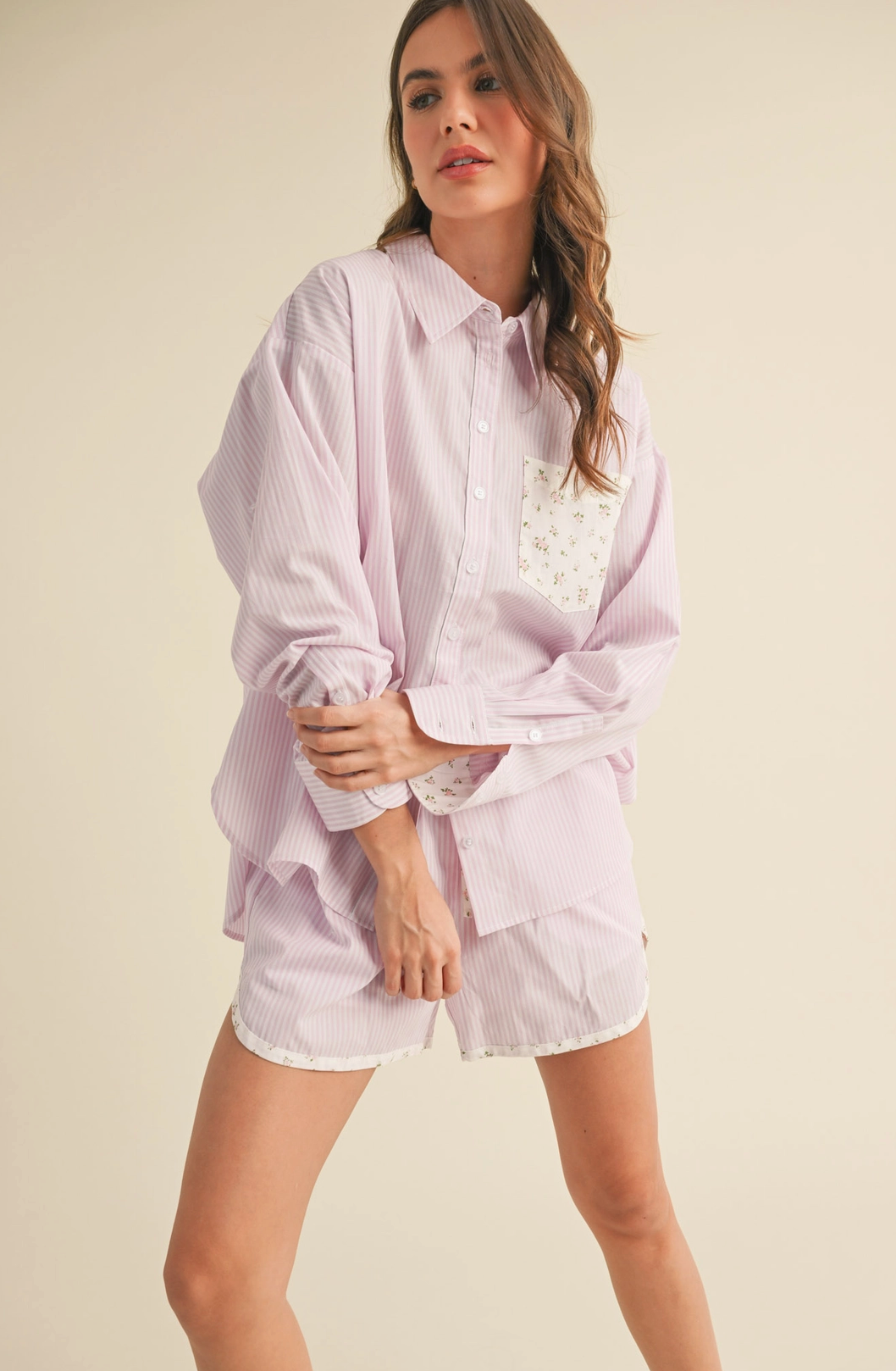 Say goodbye to outfit dilemmas with our must-have Striped and Floral Contrast Long Sleeve Button-Up and Shorts Set! Designed for those who want to look stylish without the hassle, this complete ensemble takes the guesswork out of getting dressed.