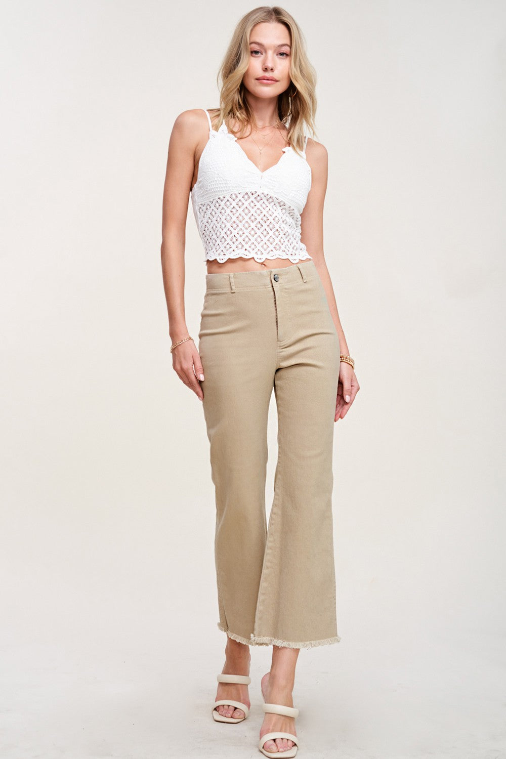 Judy is a very comfortable stretchy pant! Made from an adaptable fabric featuring high-rise, button closure at front, wide leg that hits above the ankle.