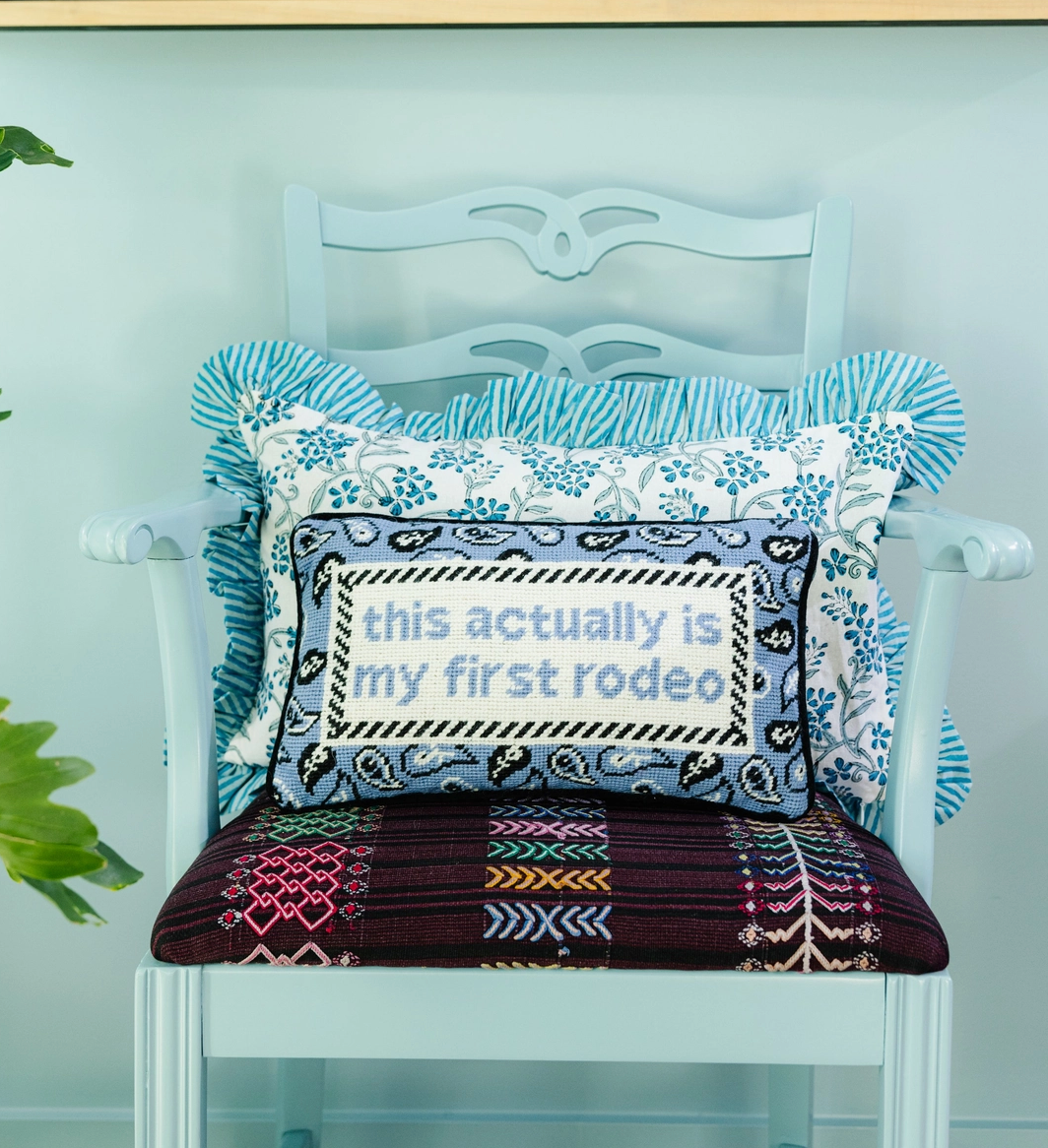 For the ones who know that every new adventure is a learning experience. This pillow is for those who say, ‘This is actually my first rodeo,’ because sometimes, you’ve got to embrace the moment, even if it’s your first time around the block. Embrace the latest joy-inspired decor movement, and transform your home with Our Needlepoint and Statement Pillows.