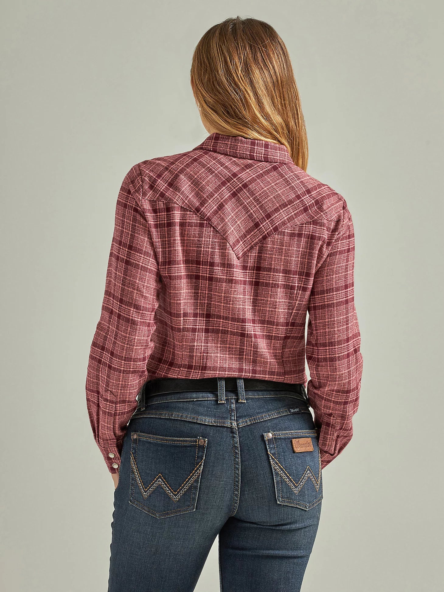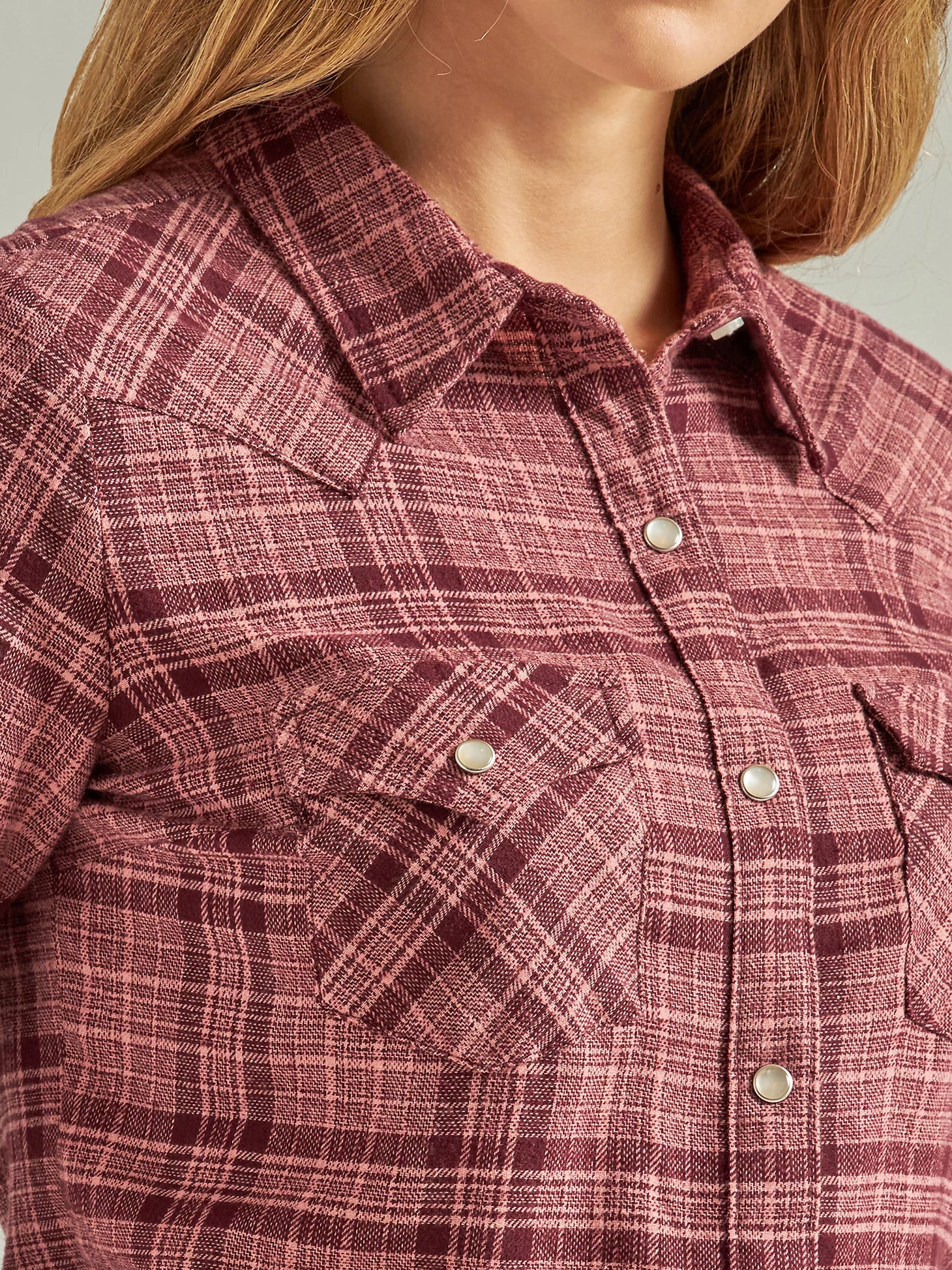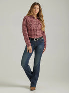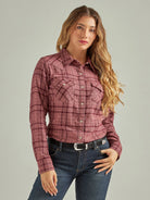 Women's Essential Long Sleeve Flannel Plaid Western Snap Shirt In Ash Rose