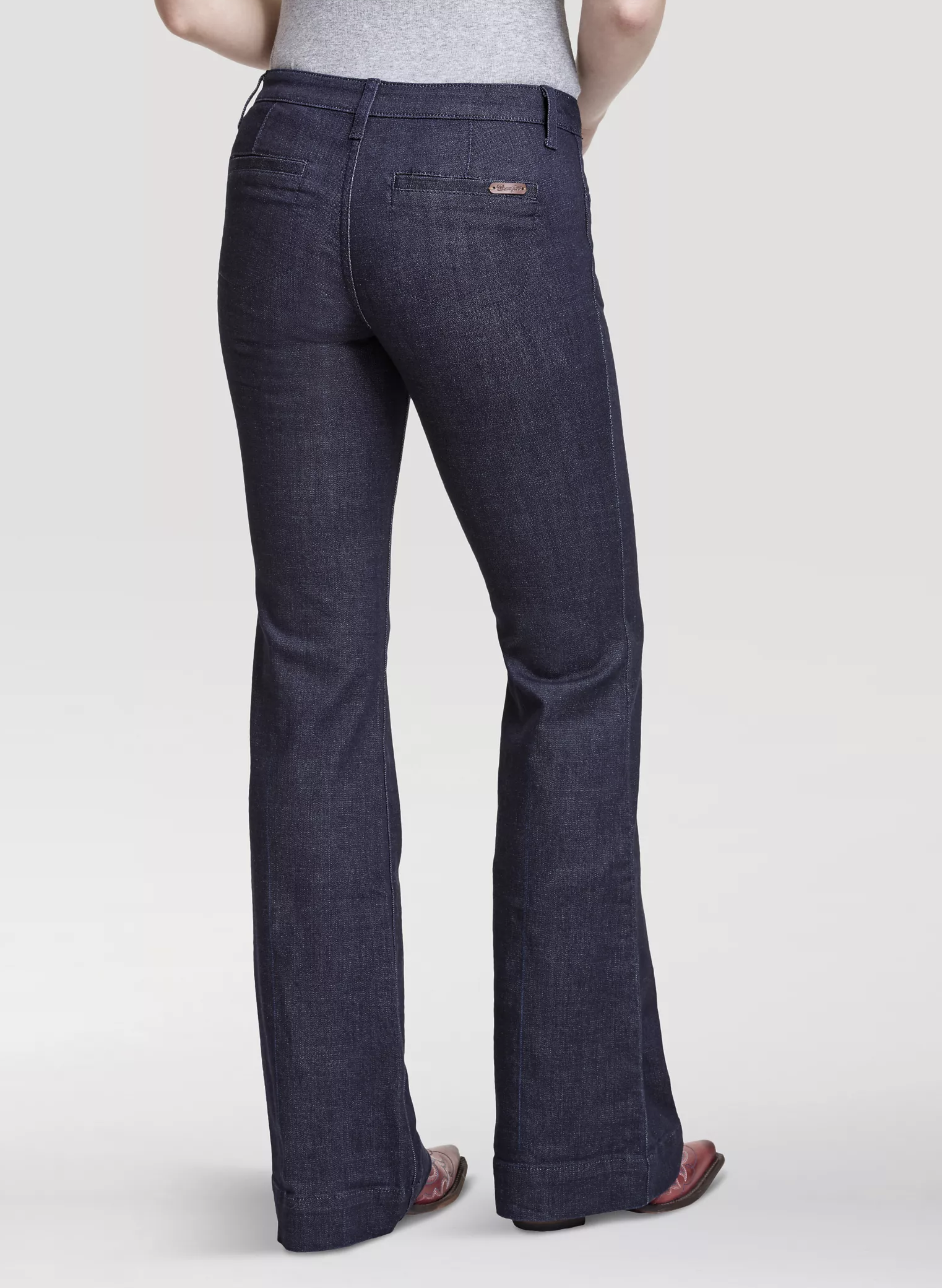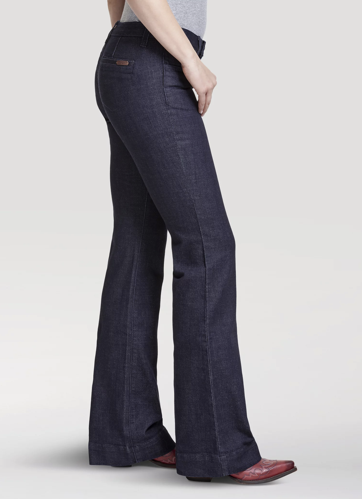 Like all Wrangler Retro® jeans, our Mae wide leg is marked by its Western authenticity, making it a go-to style for cowgirls everywhere. With its contour waist and mid rise, these women's trouser jeans are made to fit comfortably while they flatter. Want the look of a flare with added comfort? Our women's wide leg jeans make it happen. With more room at the knee and a gradual opening down the leg, the Mae wide leg gives you the room you need to stay active and in style. Wrangler® jeans for women are designed with a Western state of mind, so you can be confident that they'll keep up with you no matter what the day brings.